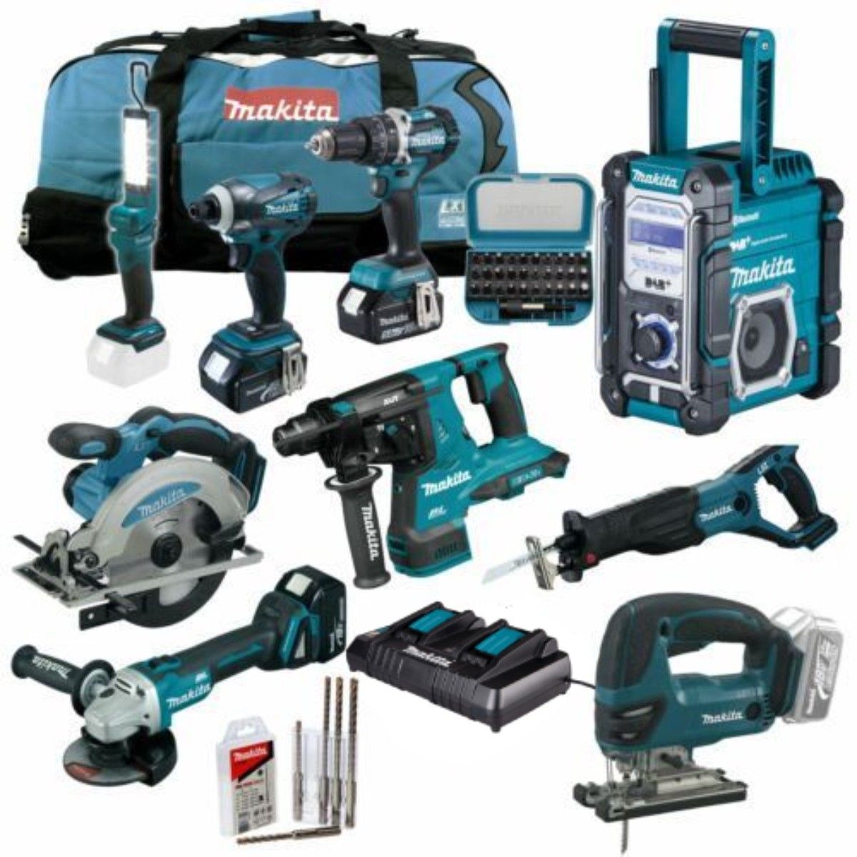Makita MAKITA 18V Akku 16tlg. Mega-Set DHR281ZJ Kombi-Bohrhammer DGA513 DHP484 RTJ Z