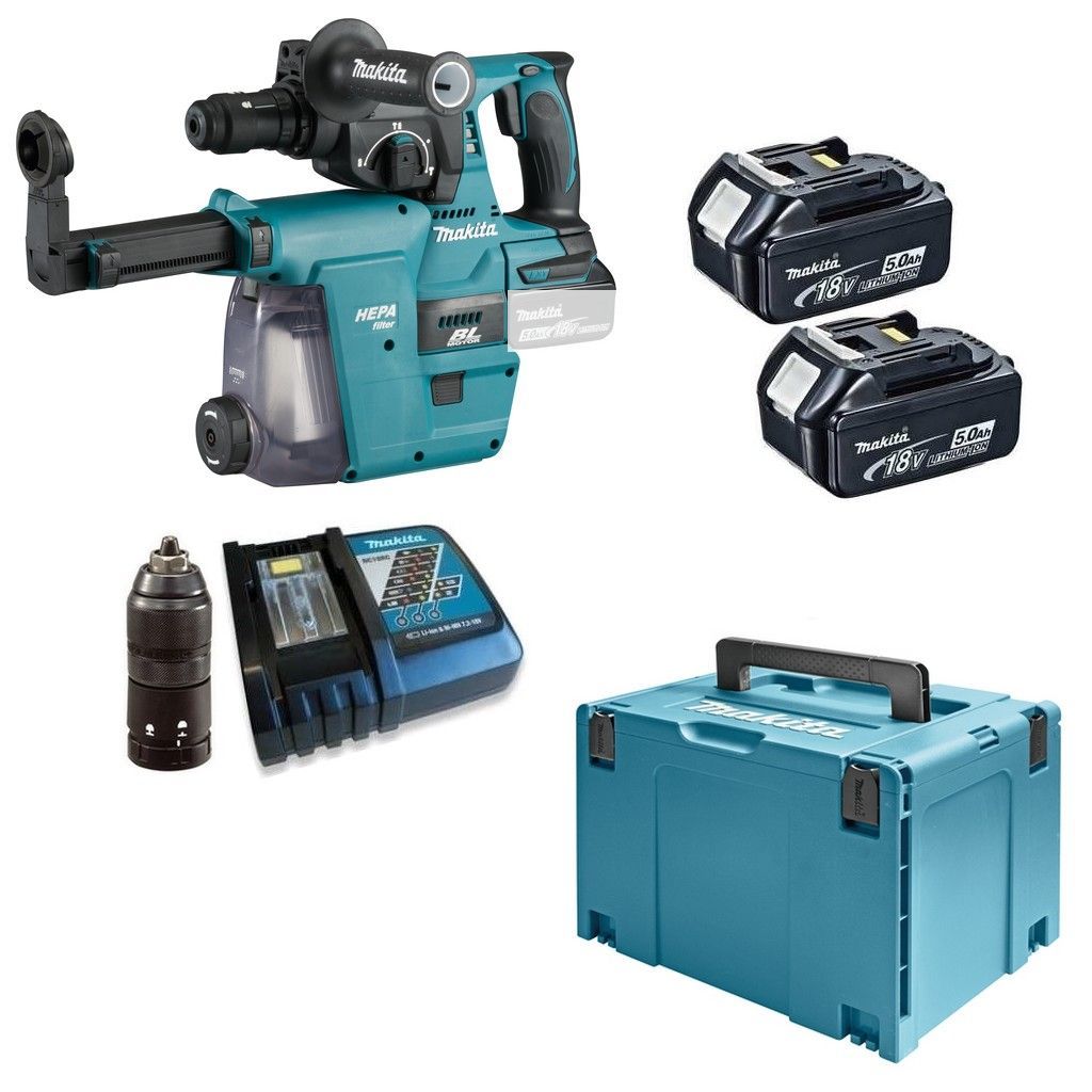 MAKITA Makita Akku-Kombihammer DHR243RTJW 18V + 2x 5,0Ah + DC18RC + DX07 + MAKPAC 4
