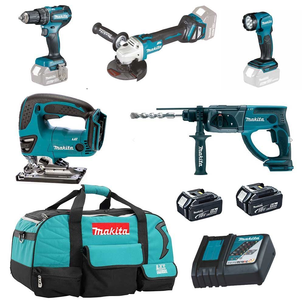 Makita MAKITA Akku Set Dhp485 Rtj Dga511Z Djv180 Dhr202 + Akkus 18V Werkzeug Combo Kit