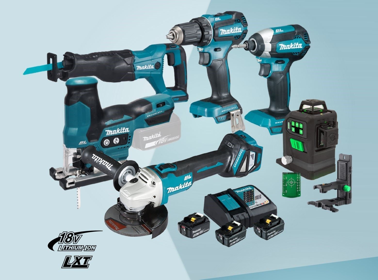 Jetzt 10% Sparen mit Gutscheincode SPOOKY10 - Makita Akku Set bestehend aus: Makita Akku-Bohrschrauber DDF485 Makita Akku-Drehschlagschrauber DTD153Z Makita Akku-Pendelhubstichsäge DJV185Z Makita Akku-Reciprosäge DJR186ZK Makita Akku-Winkelschleifer DGA511Z Makita Akku 2 x BL1850 5,0 Ah Makita Akku