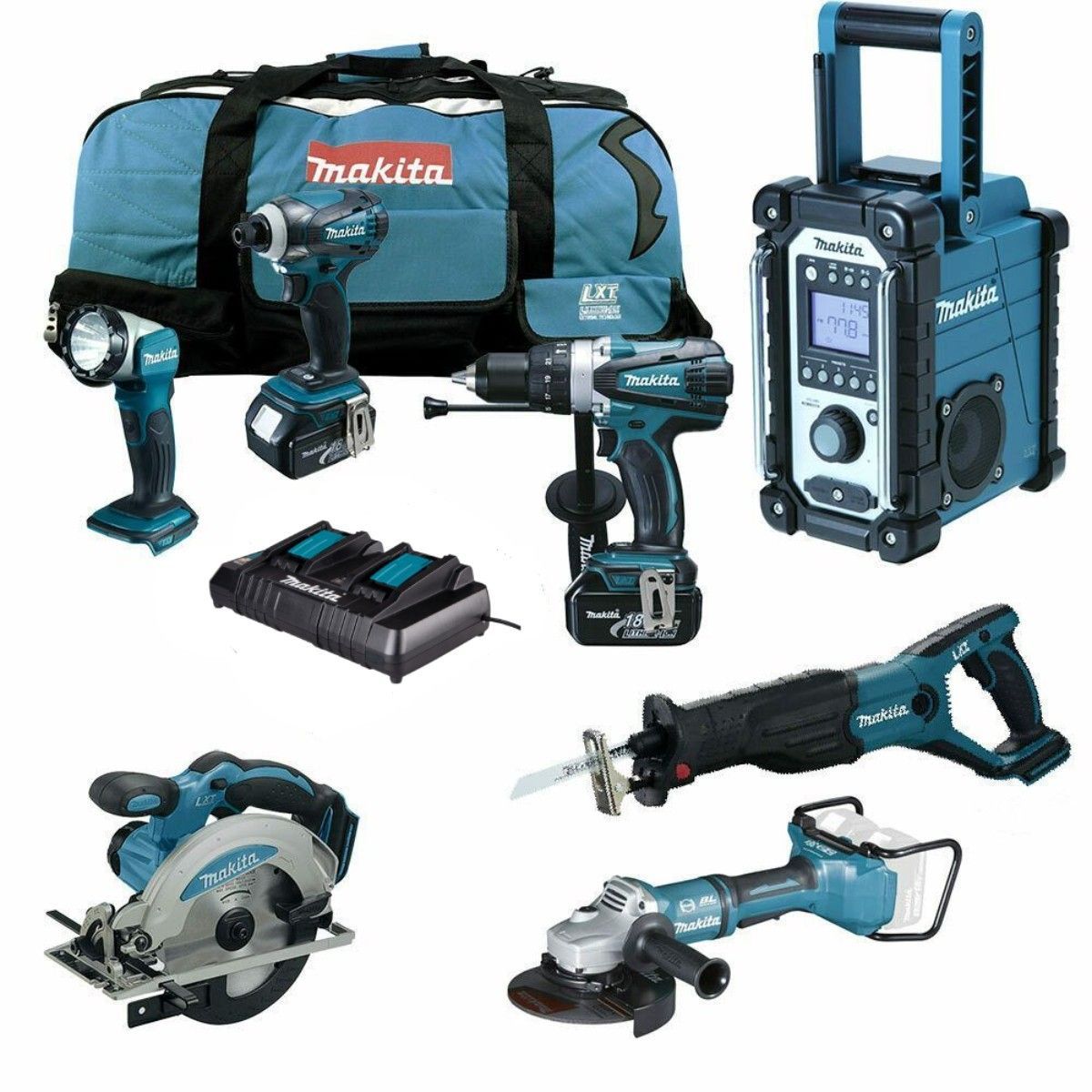 Makita MAKITA DGA700PT2 Akku Winkelschleifer LXT 18V 11tlg. Akku Werkzeug Combo Set