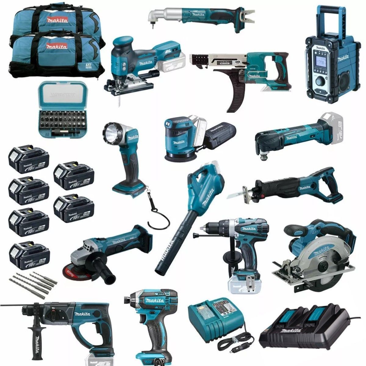 Makita MAKITA DMR112 DAB+ Baustellenradio 18V Akku MEGA Werkzeug SET XXL 20tlg