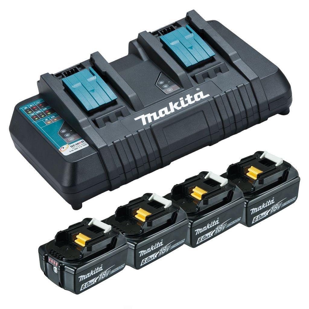 MAKITA Makita Power Source-Kit Li 18V Ladegerät DC18RD 4x Akku BL1860B 6,0Ah 199485-6