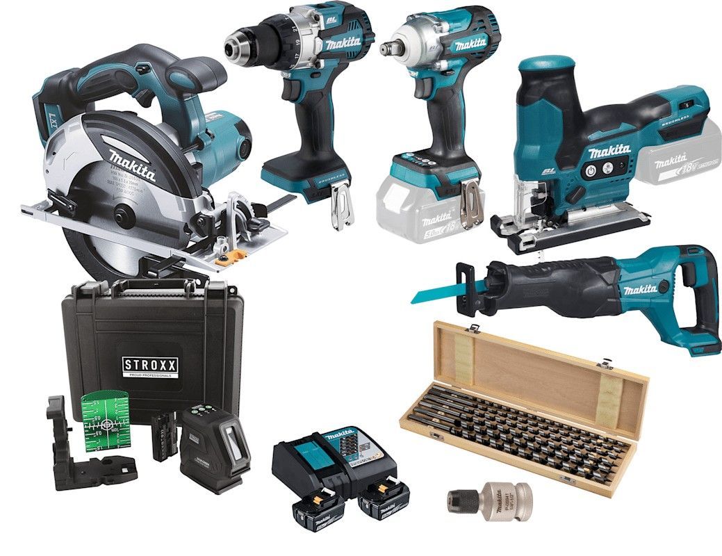 Jetzt 10% Sparen mit Gutscheincode SPOOKY10 - Makita Akku Set bestehend aus: Makita Akku-Bohrschrauber DDF489 Makita Akku-Reciprosäge DJR186ZK Makita Akku-Handkreissäge DHS630Z Makita Akku-Stichsäge DJV185Z Makita Akku-Schlagschrauber DTW300Z Makita Akku 2 x BL1850 5,0 Ah Makita Schnellladegerät Mak