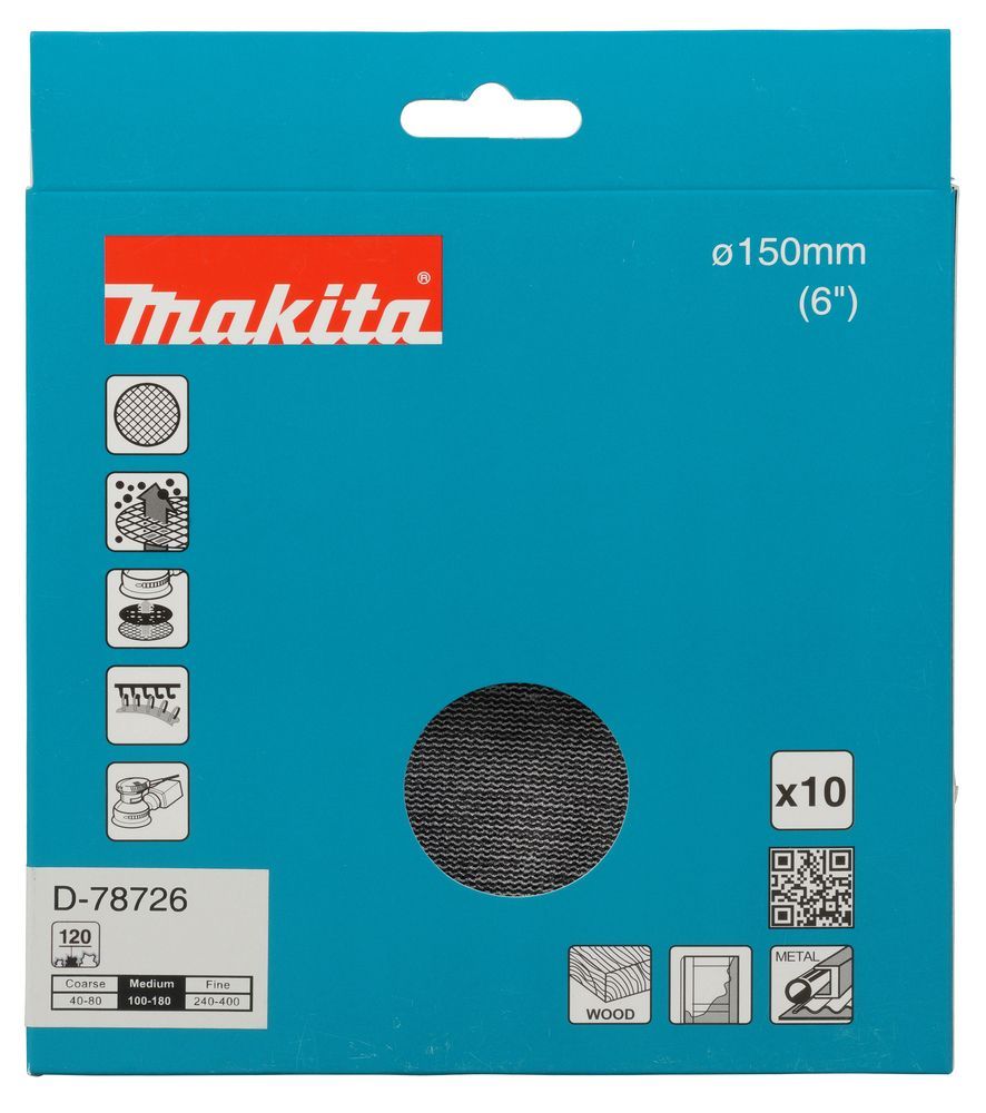 Makita Makita Schleifnetz A120 150mm Klett Ø 150 mm • Körnung A120 • Klett • Gitter • 10 Stü
