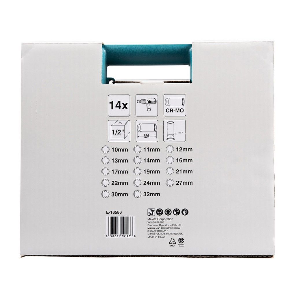 MAKITA Makita Steckschlüssel Set 14-teilig 1/2 Zoll KFZ-Schlagnuss-Set Koffer E-16586