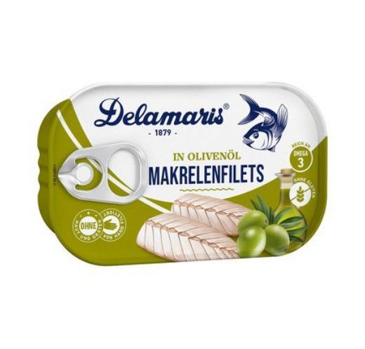 Makrelenfilets in Olivenöl ohne Haut und Gräten Delamaris 125g 4 Stückzahlen