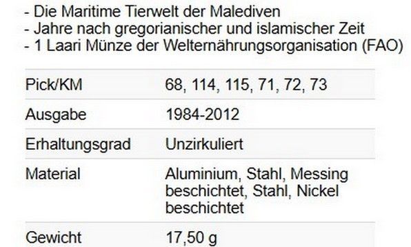 Malediven / Maldives KMS. 1984-2012 Unc 6 Münzen 6245#