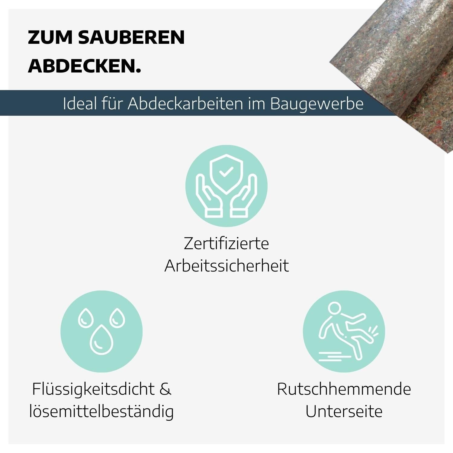 Das Malerabdeckvlies BG bietet effektiven Schutz für Oberflächen und Renovierung. Hergestellt in Deutschland aus Polyester und Polypropylen (PP), ist es stark haftend und reißfest. Mit einer Beständigkeit gegen Witterung und Feuchtigkeit ist es für industrielle Nutzung, Handwerk, Büro und Kochen gee