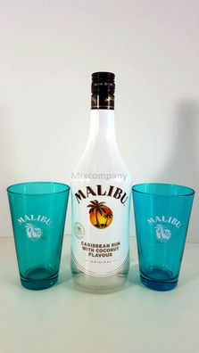 • Malibu Caribbean Rum/Likör 0,7l 700ml (21% Vol) + 2x Gläser 2cl geeicht , Hellb