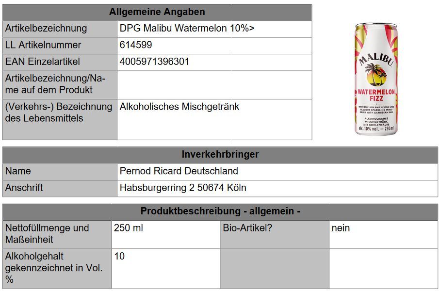 Malibu Watermelon 10% vol. 0,25 L Dose, 12er Pack (12x0,25 L) EINWEG Pfand