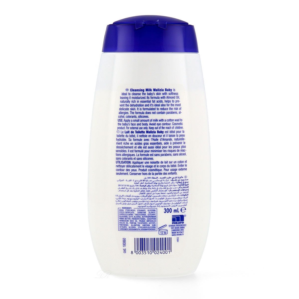 Malizia Baby Reinigungsmilch 300 ml ohne Parabene für empfindliche Babyhaut