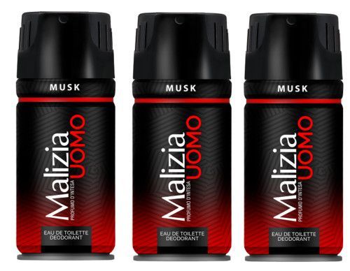 Malizia Uomo Musk Deo 3 x 150ml Deodorant Eau de Toilette Spray