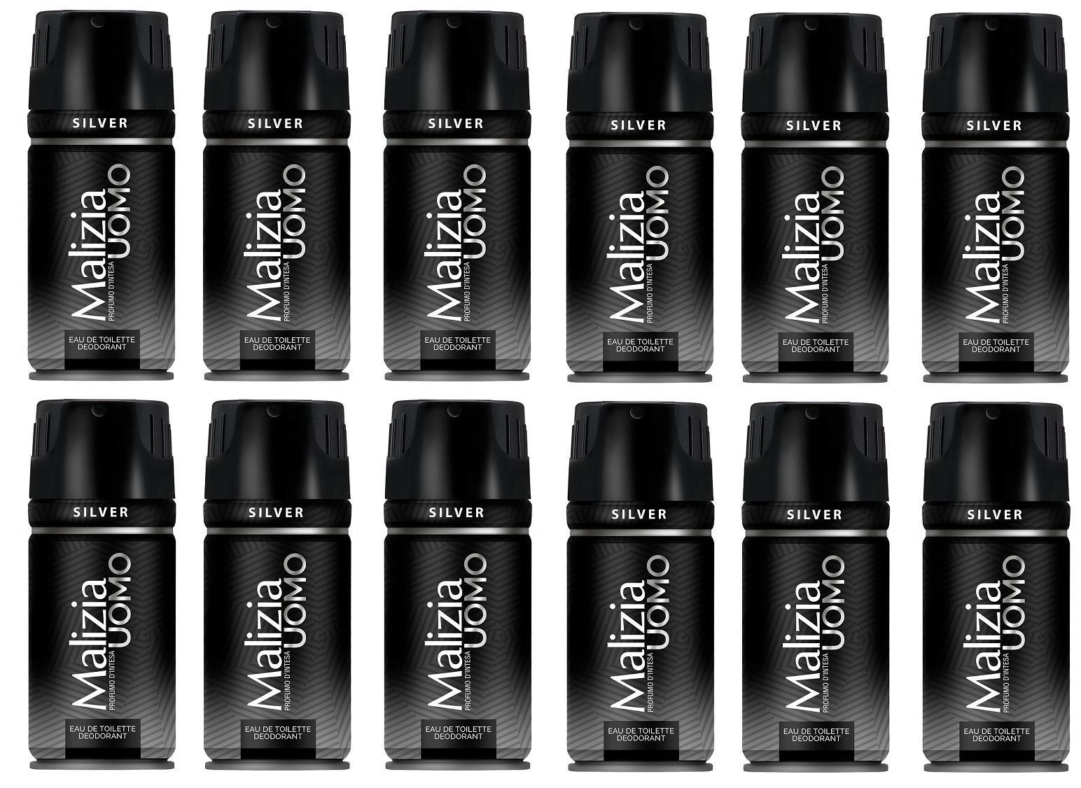 Malizia Uomo Silver Deo 12 x 150ml Deodorant Eau de Toilette Spray