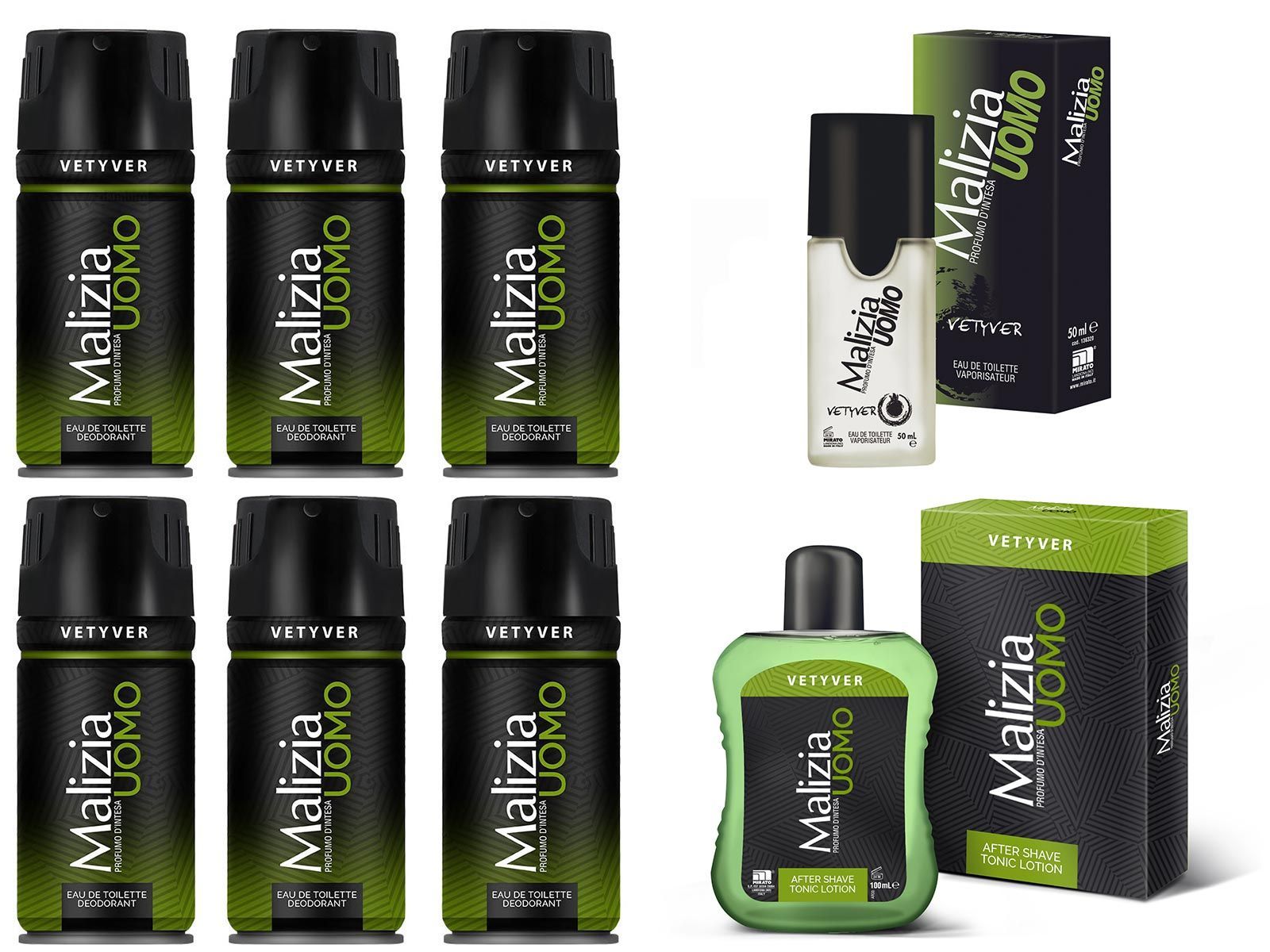 Malizia Uomo Vetyver SET 6x150ml Deo + 1x50ml EdT Parfum + 1x100ml After Shave