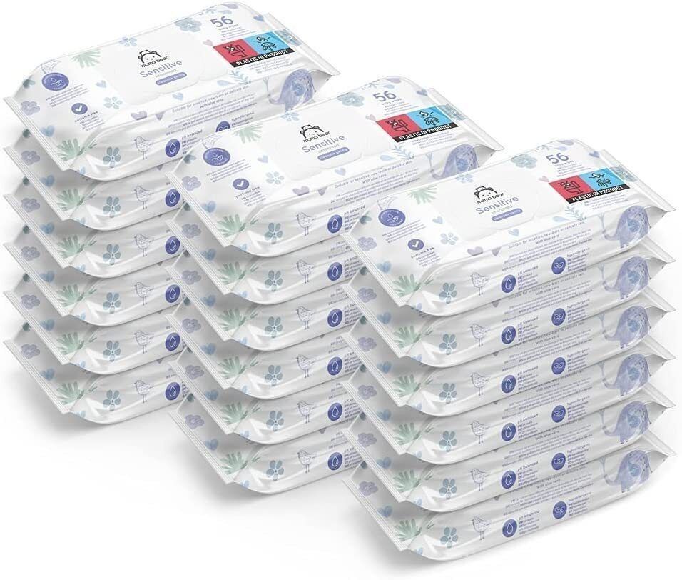 MULTI-VORTEILSPACK: 18er-Packungen; 56 wasserbasierte Técher pro Packung PARFßMFREI: Parfémfreie, vorbefeuchtete Feuchttécher FßR EMFPINDLICHE HAUT: Sanft formuliert und hypoallergen fér die zarte Haut des Babys VIELSEITIG NUTZBAR: Fér Hände, Gesicht und den Windelbereich BERUHIGENDE INHALTSSTOFFE: