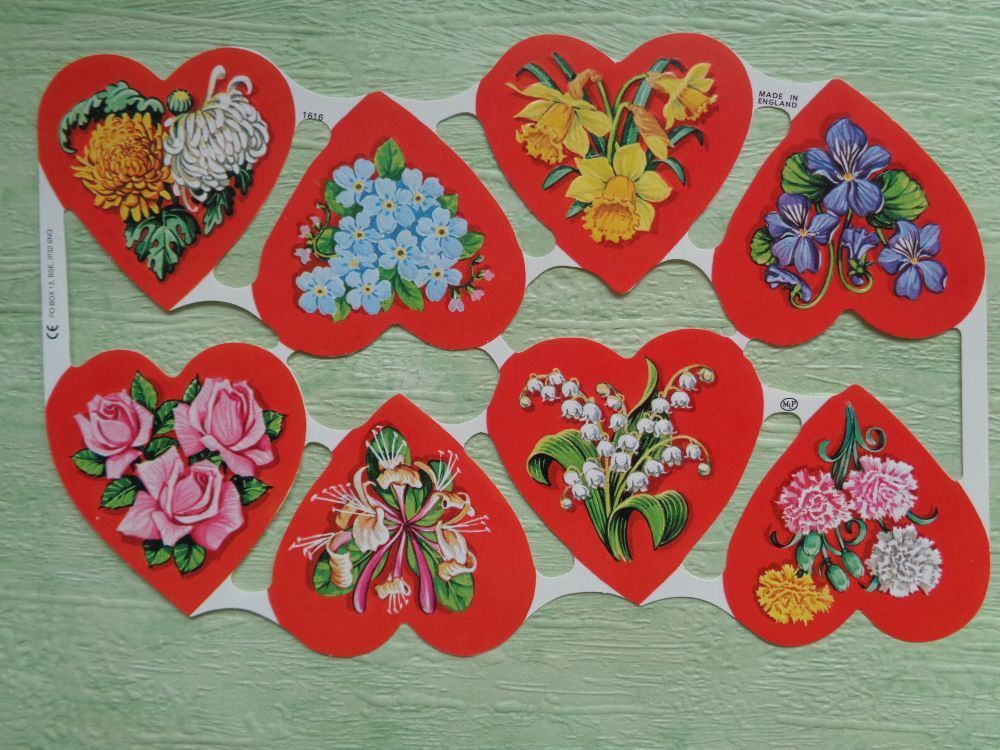 Mamelok England Scraps Chromos Glanzbilderbogen MLP 1616 Herzen mit Blumen