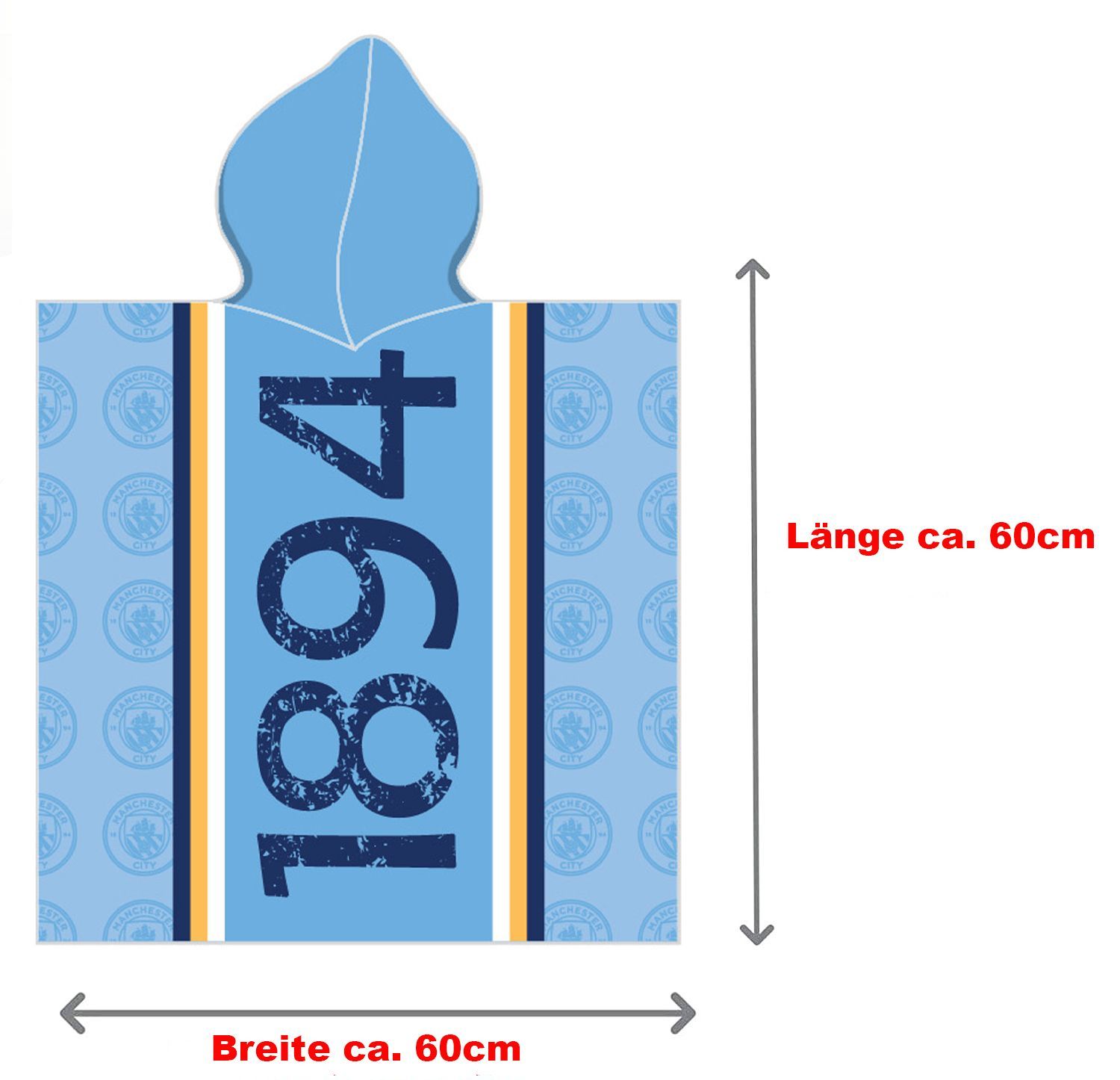 Manchester City Kinder Kapuzen Bade-Poncho Logo Blau 60x120 cm