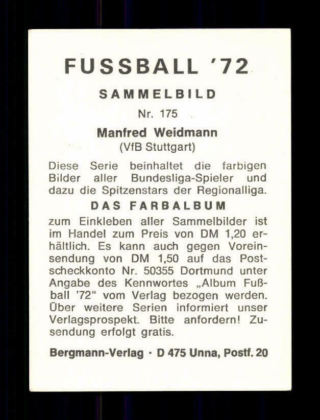 Manfred Weidmann VFB Stuttgart Bergmann Sammelbild 1972 Original Signi+ A 221220