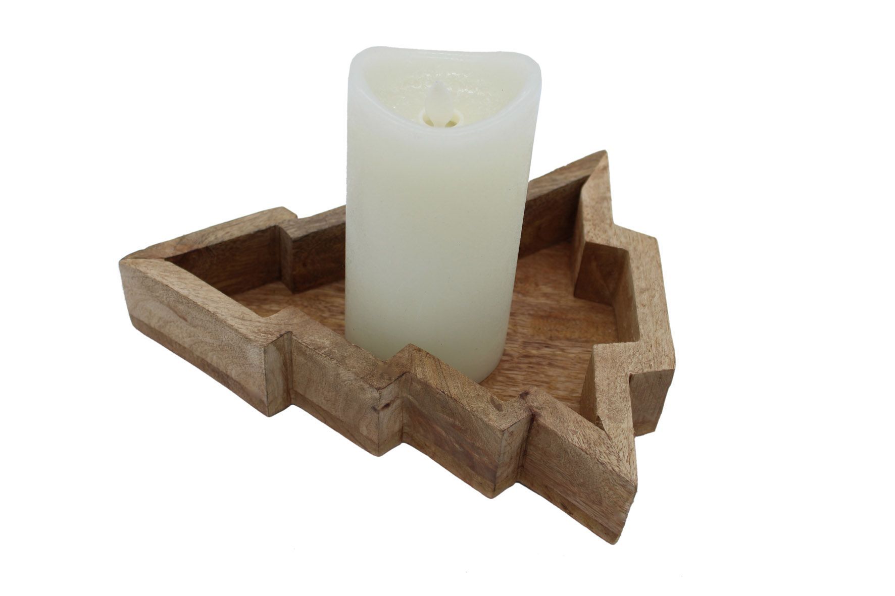 Mango Deko Schale Tannen Baum - 24 x 21 cm - Weihnachten Kerzen Tisch Tablett