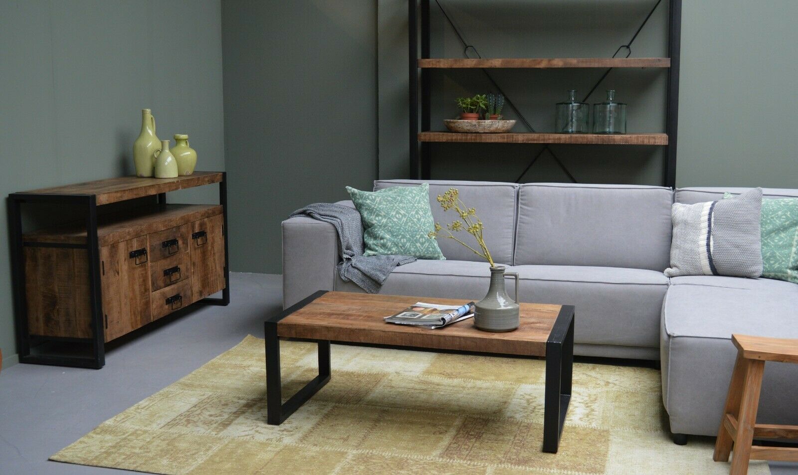 Mango Holz Couchtisch Beistelltisch Anstelltisch Strong Industrial 110 x 60 x 40 cm