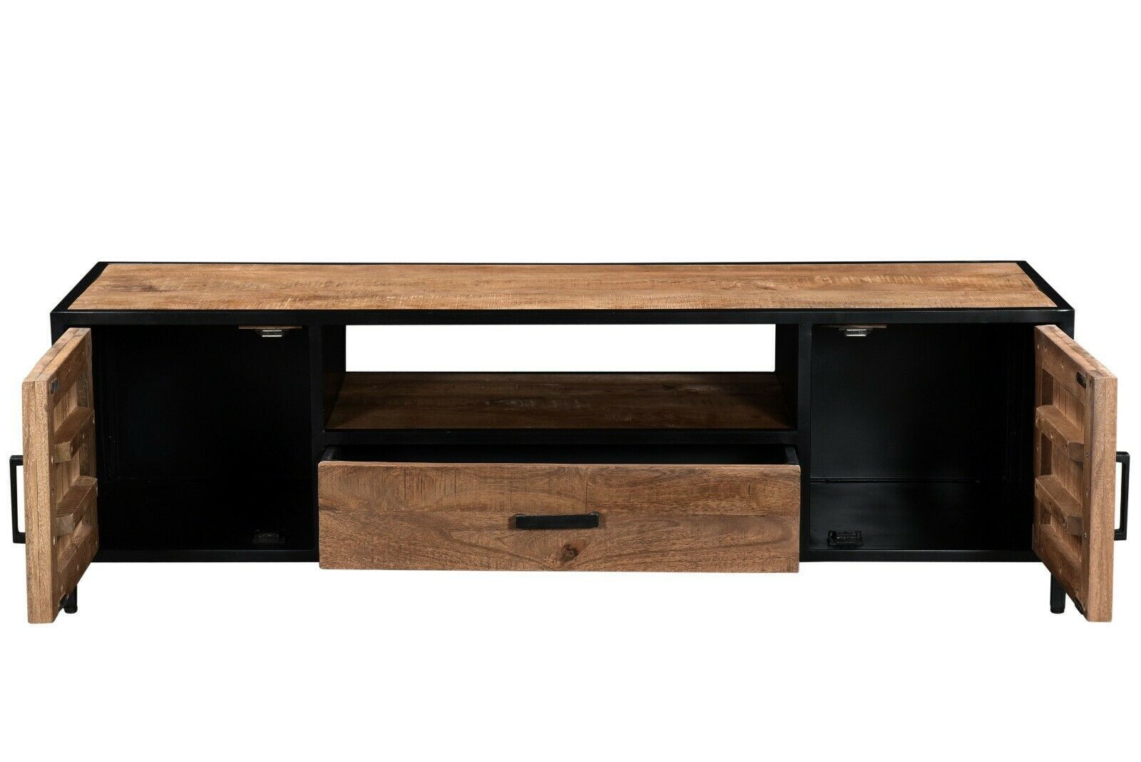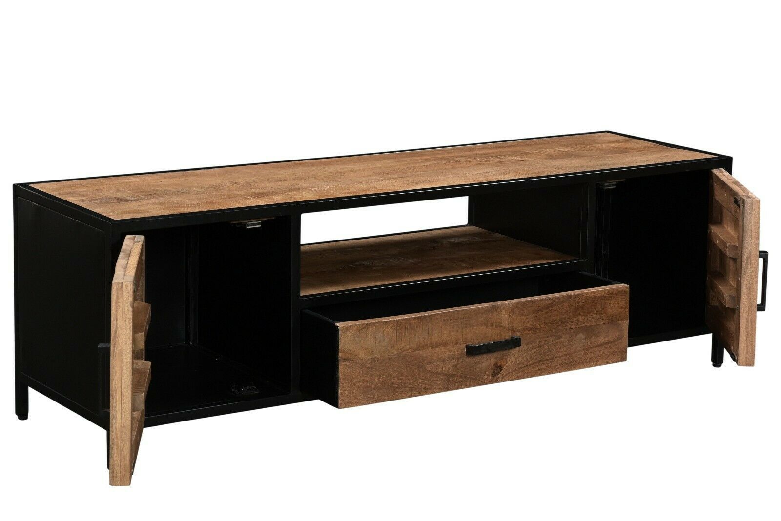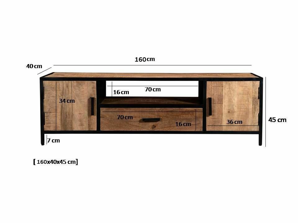 Mango Holz massiv Stahl Design TV Kommode Low Board Sturdy Massivholz 160 x 45