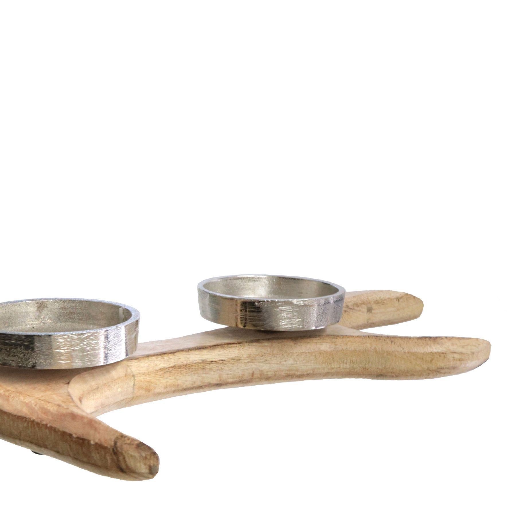 Mango Kerzenhalter GEWEIH 56 cm - 4 Alu Kerzen Teller