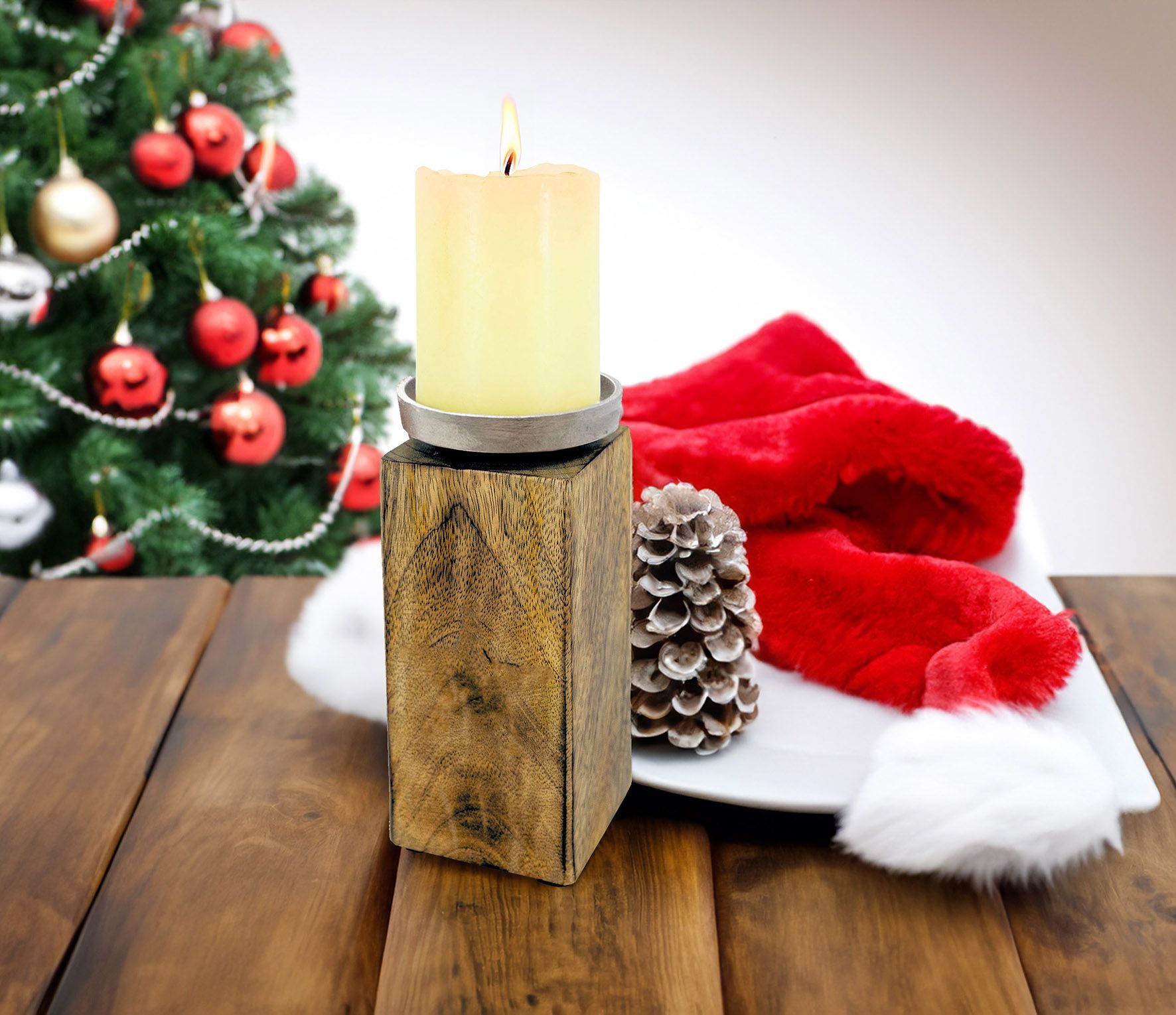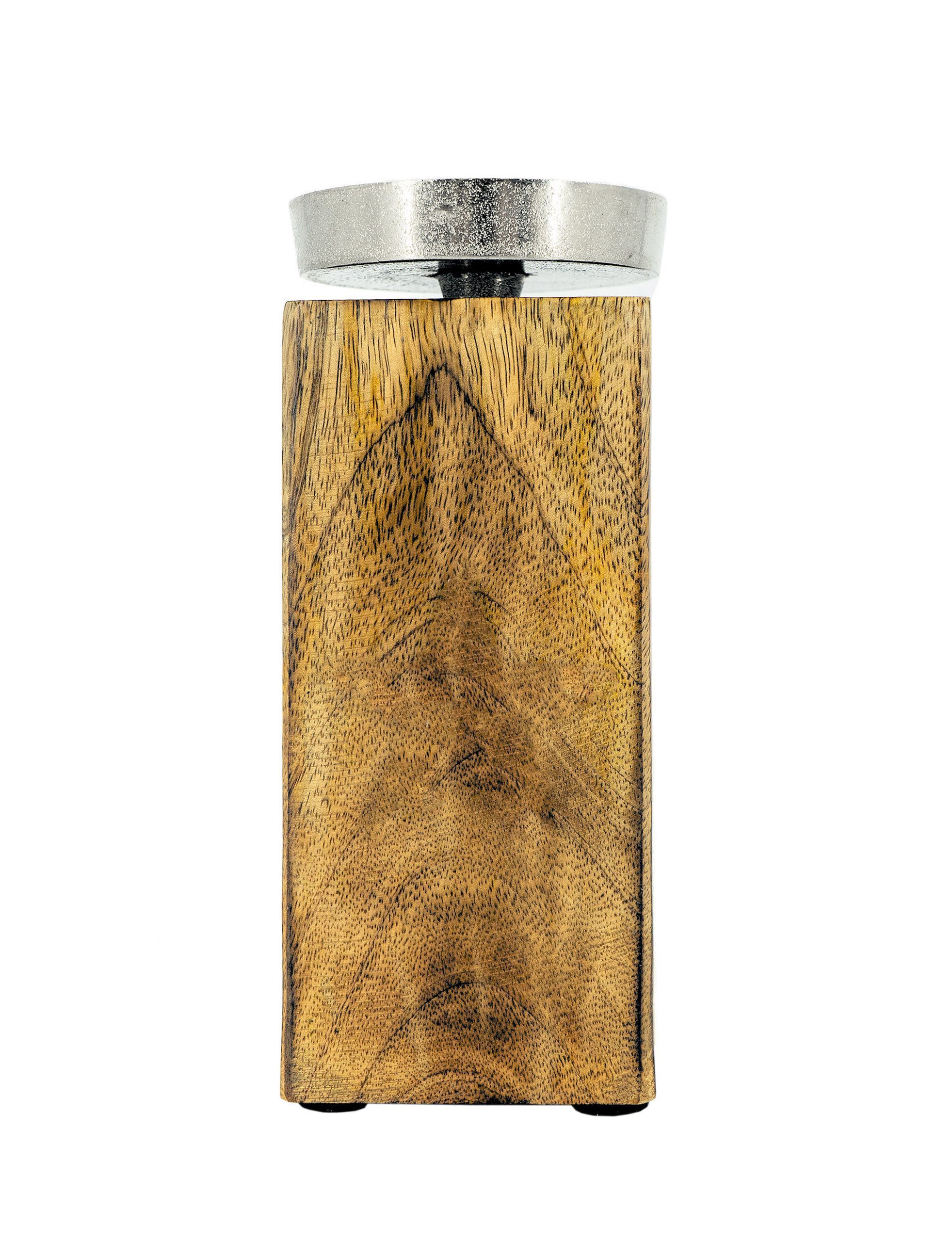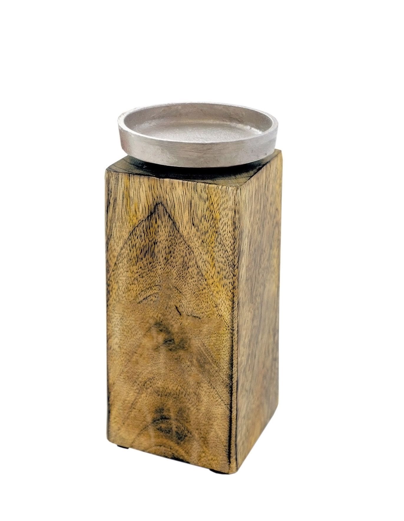 Mango Kerzenständer mit Alu Halter - klein / 20 cm - Holz Stumpen Kerzen Leuchter
