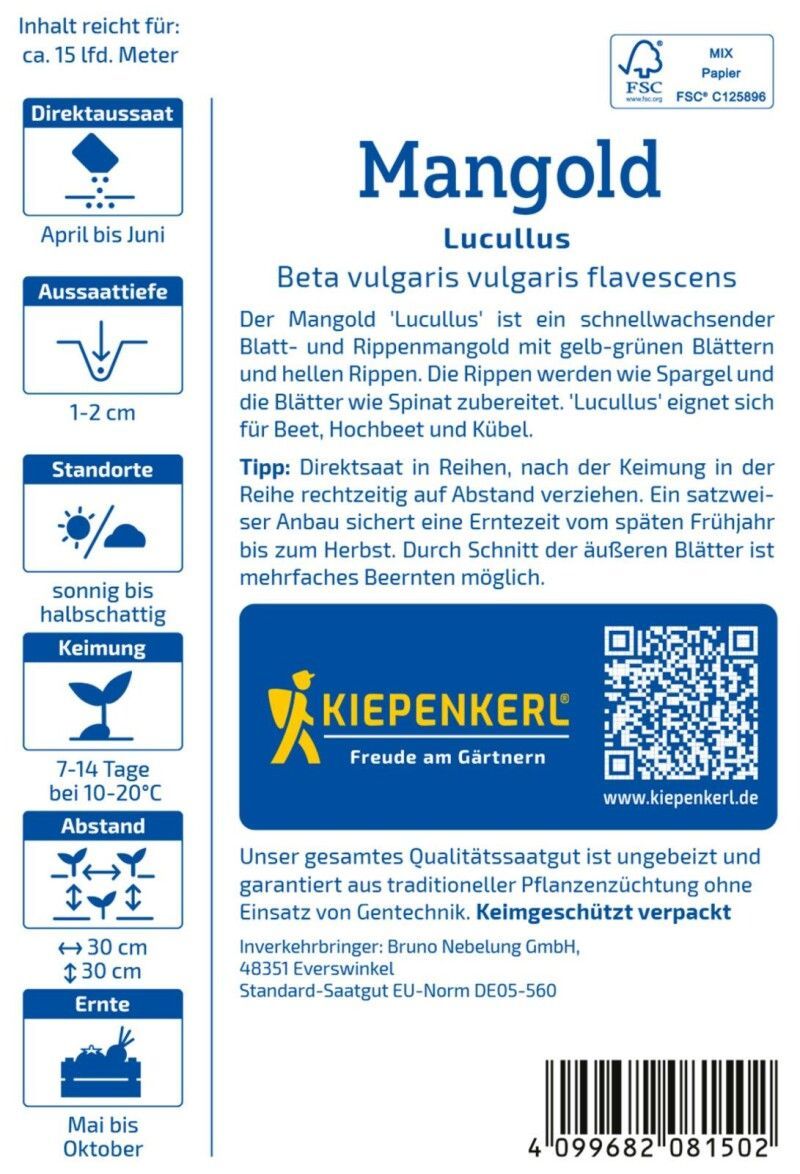 Kiepenkerl Mangold Lucullus, Blatt- u. Rippenmangold - für Beet, Hochbeet u. Kübel,