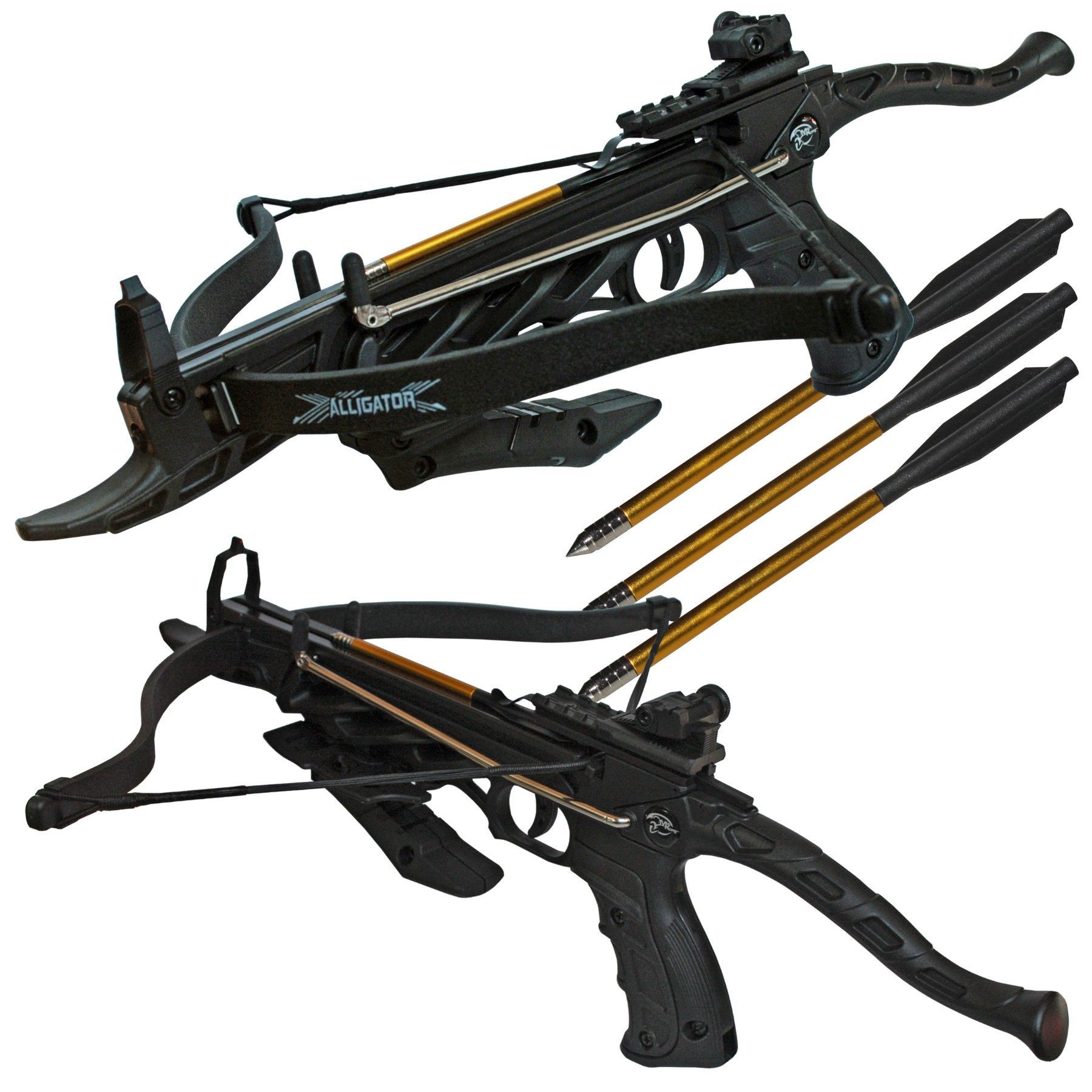 ManKung Pistolenarmbrust Alligator I 80 lbs / 38 kg schwarz mit 3 Alupfeilen (18 + )