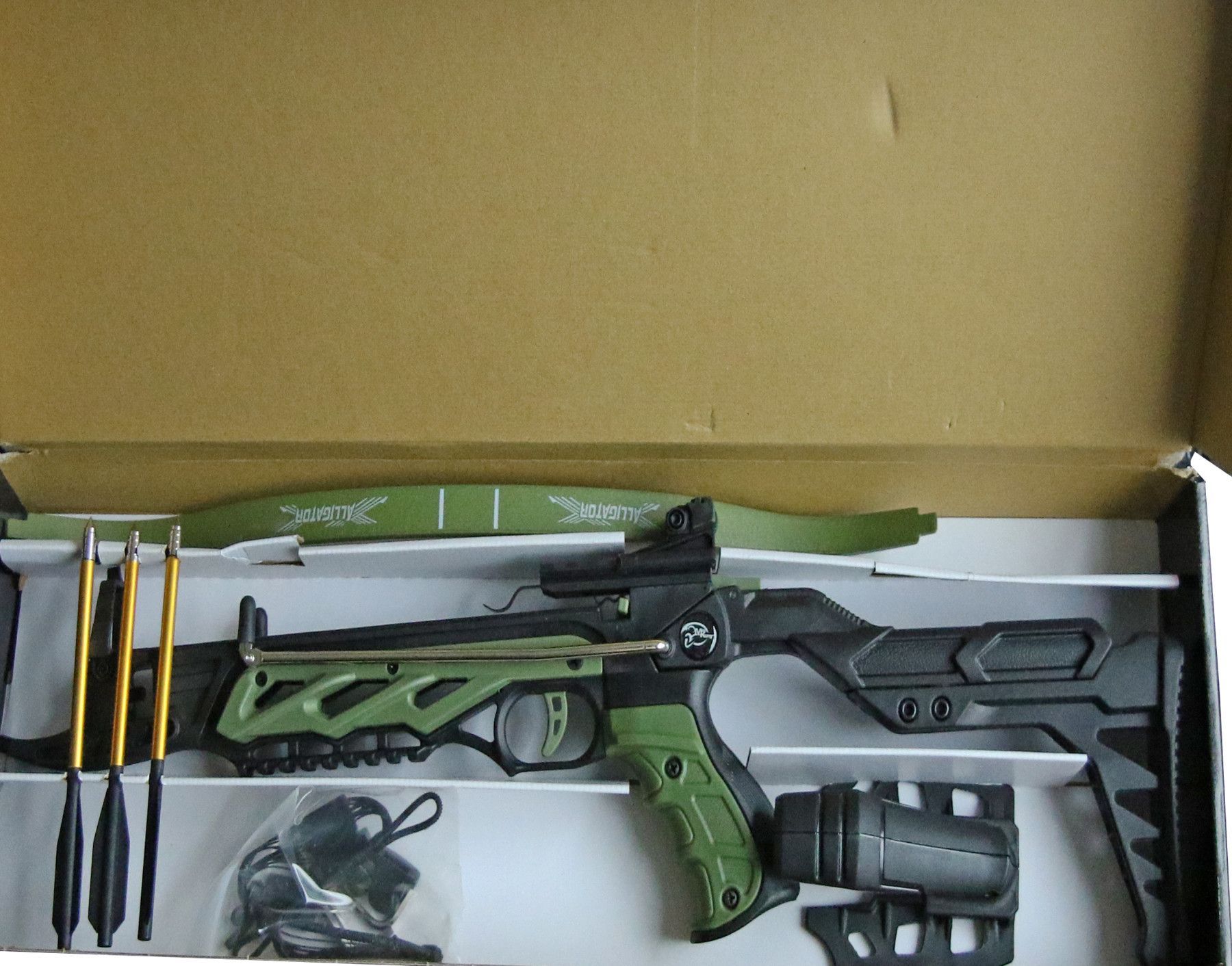 Haller ManKung Pistolenarmbrust Alligator II 80 lbs/38 kg grün mit 3 Pfeilen (18 + )