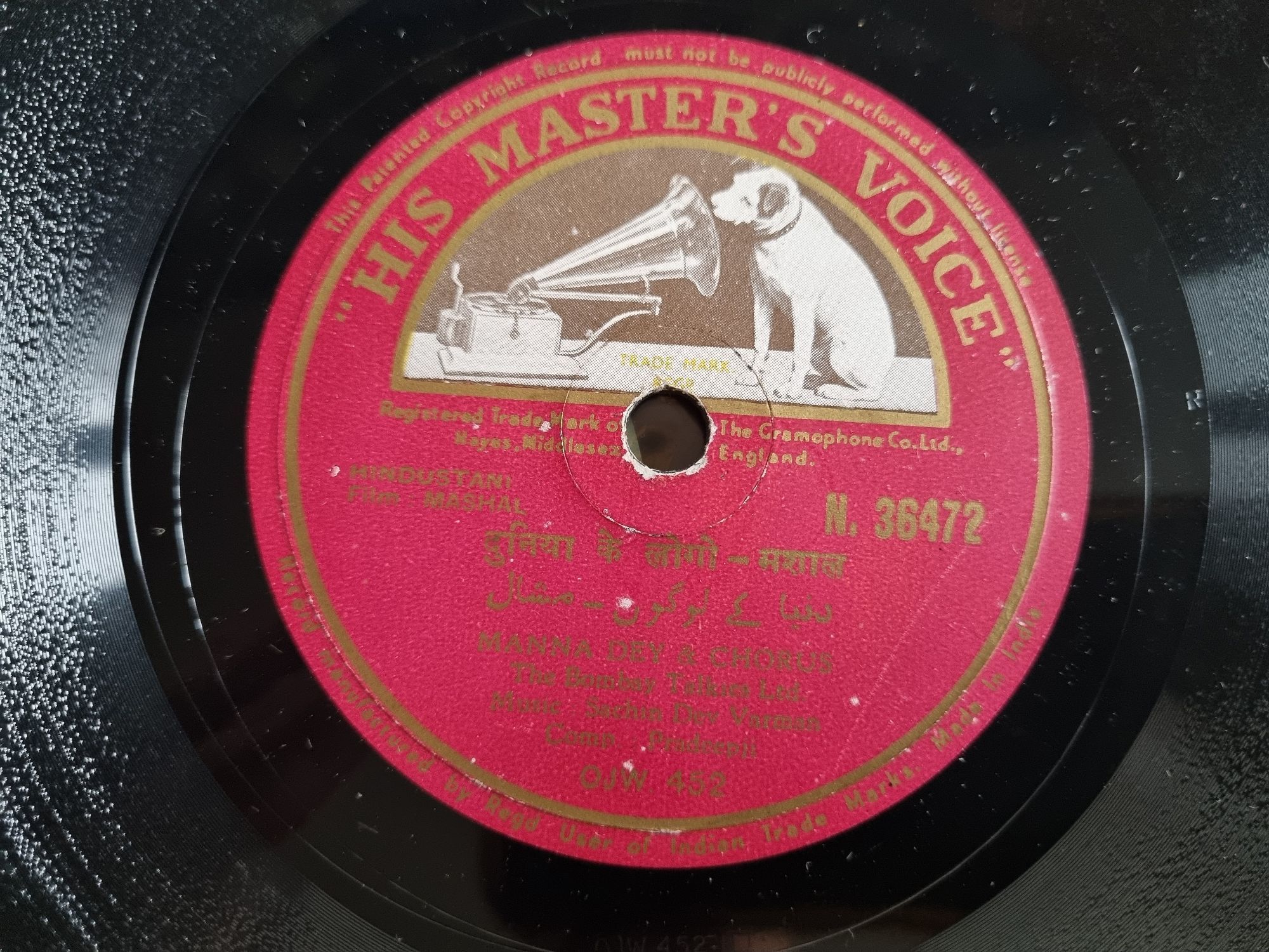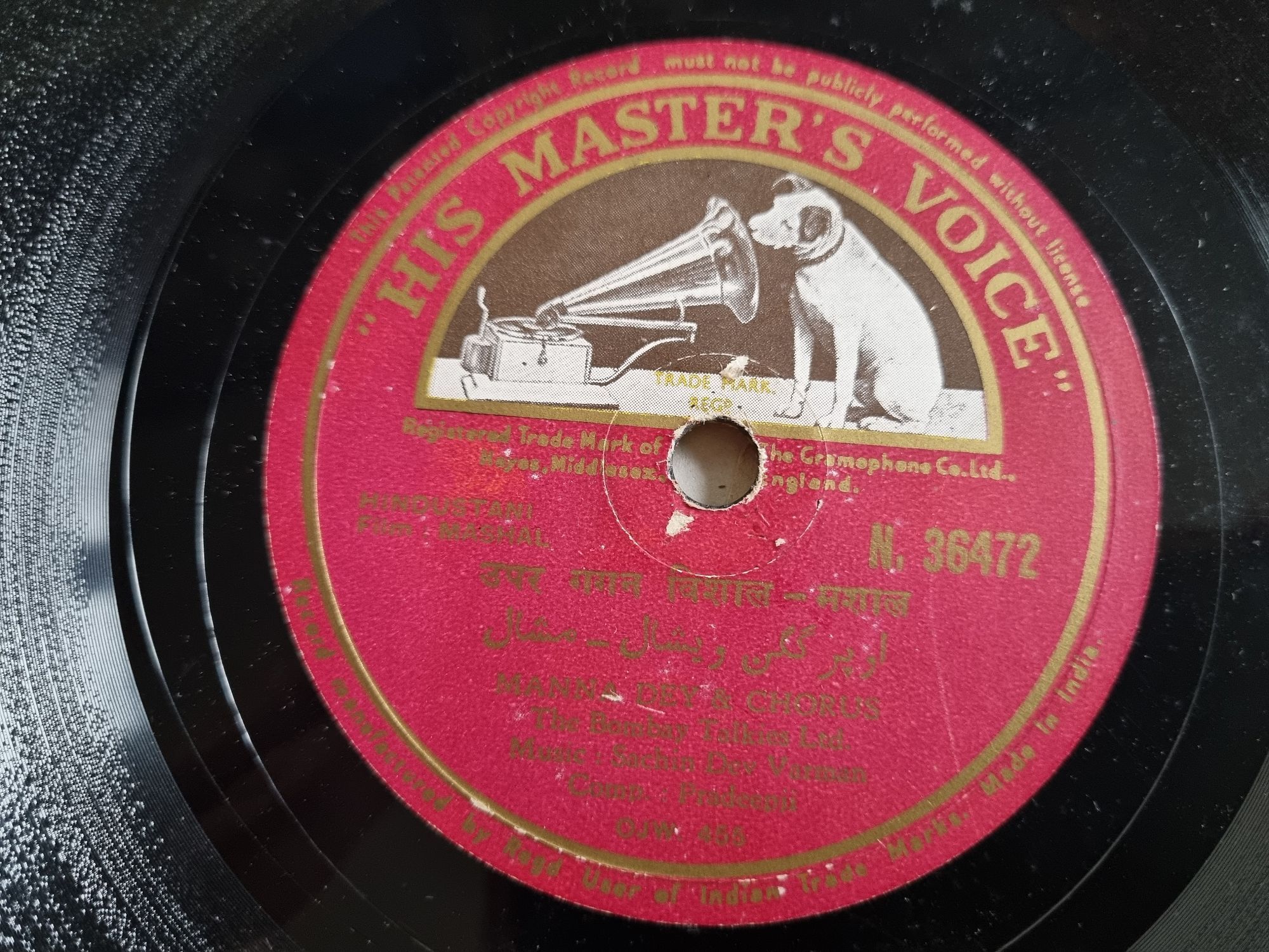 Manna Dey - Bollywood Song Schellack India 78 rpm