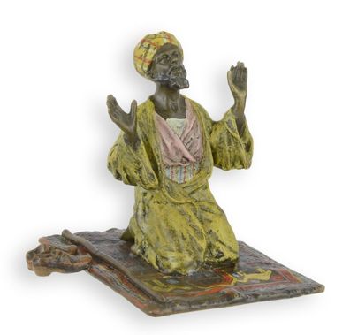 • Bronzeskulptur betender Mann auf Teppich Wiener Stil Replikat Retro Design Dekoration