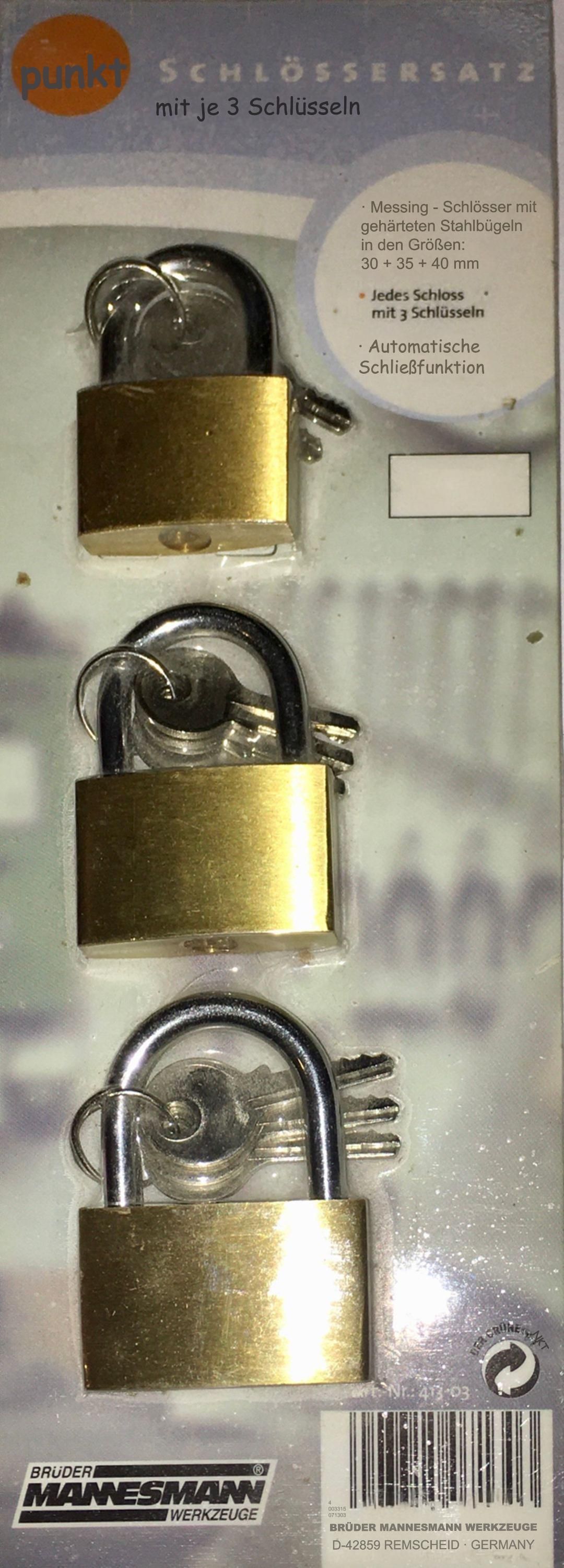 Mannesmann M 413-03 Schlössersatz 3-tlg Vorhängeschloss