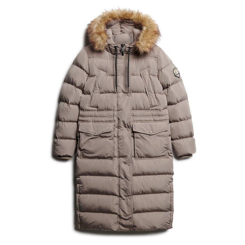 Superdry Mantel Superdry Everest Faux Fur Longline Beige Dunkel Flamm