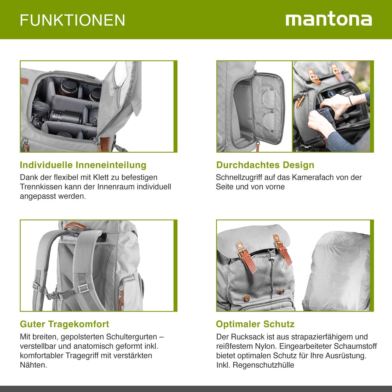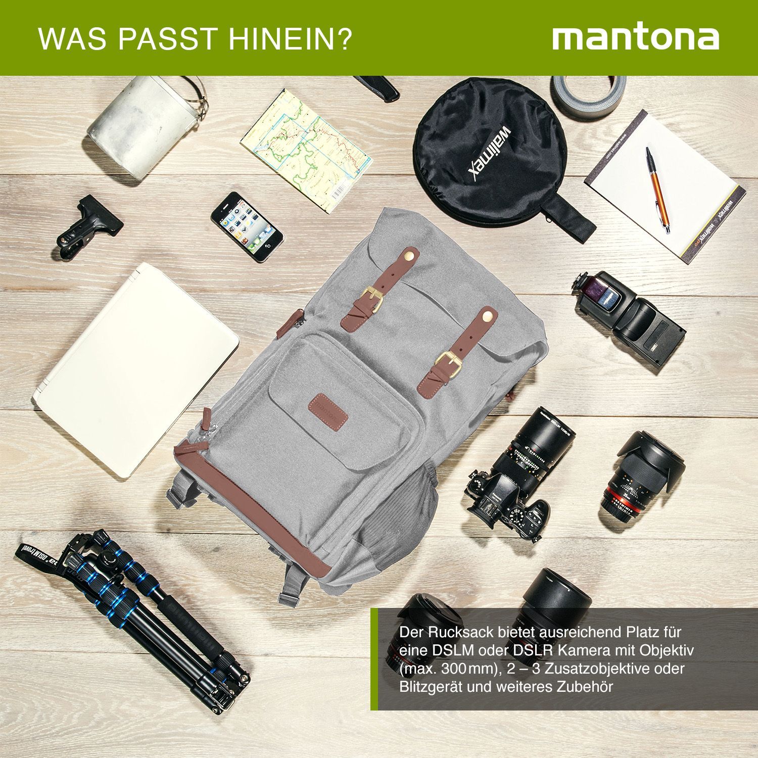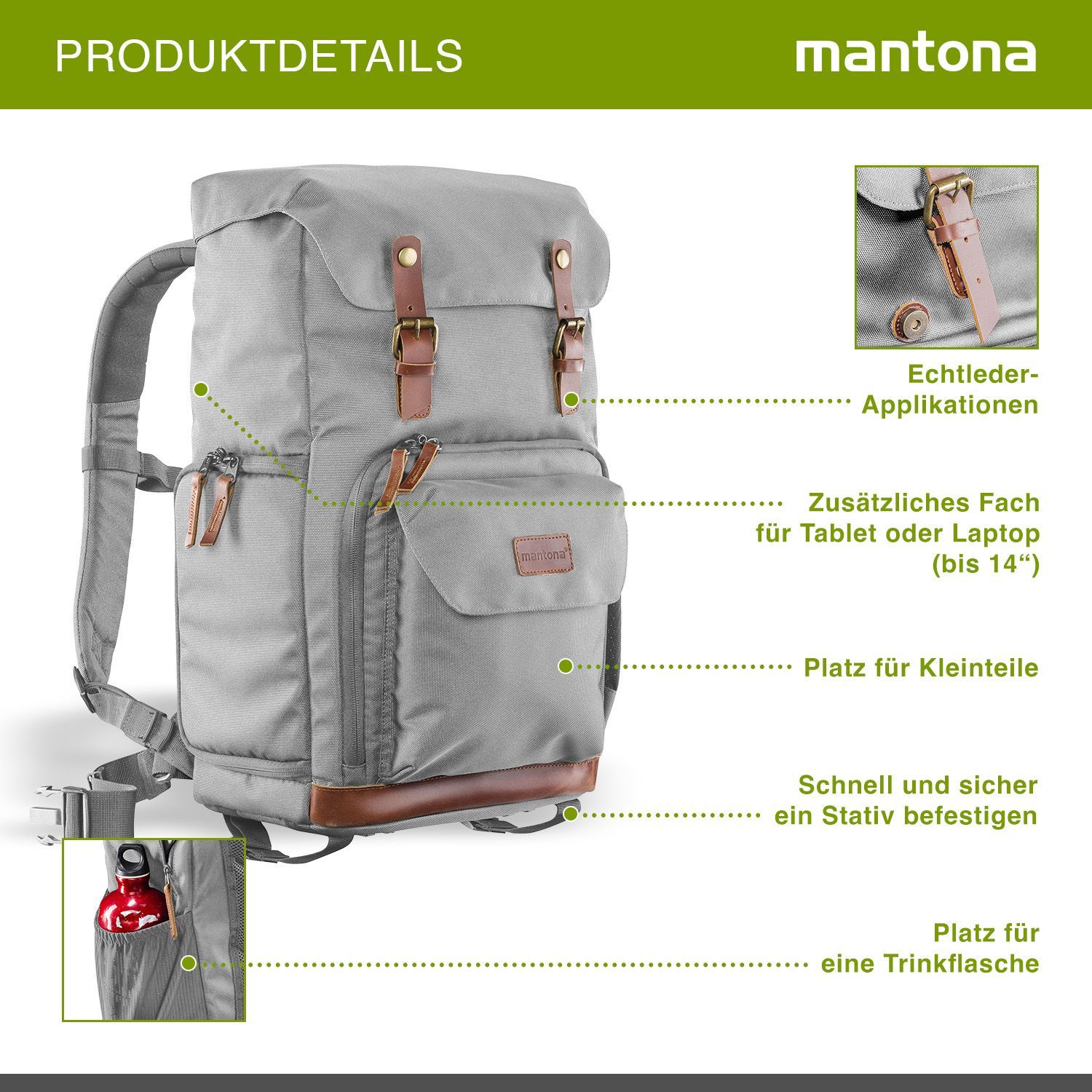 Mantona Fotorucksack Luis grau Fototasche Kamerarucksack Kameratasche Backpack