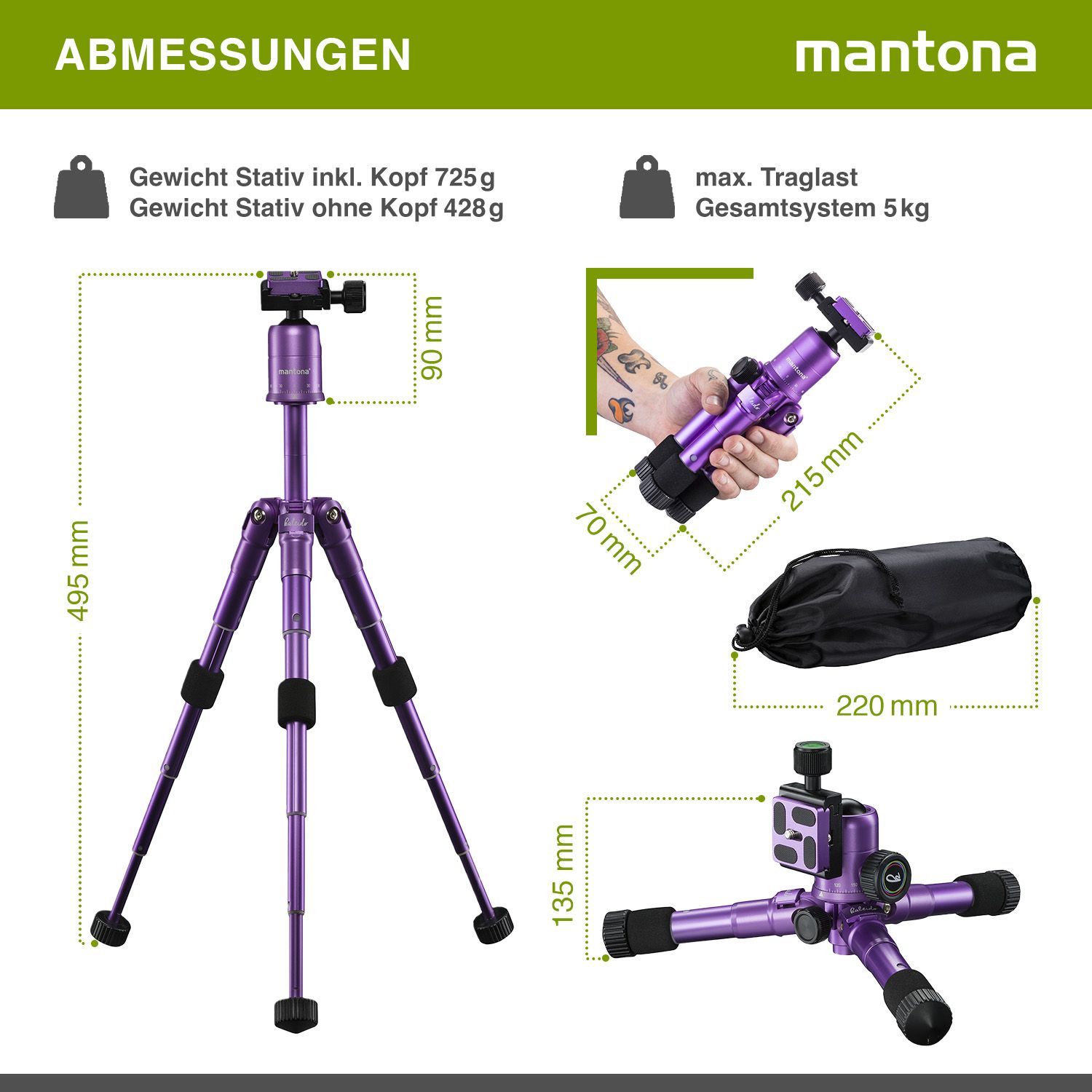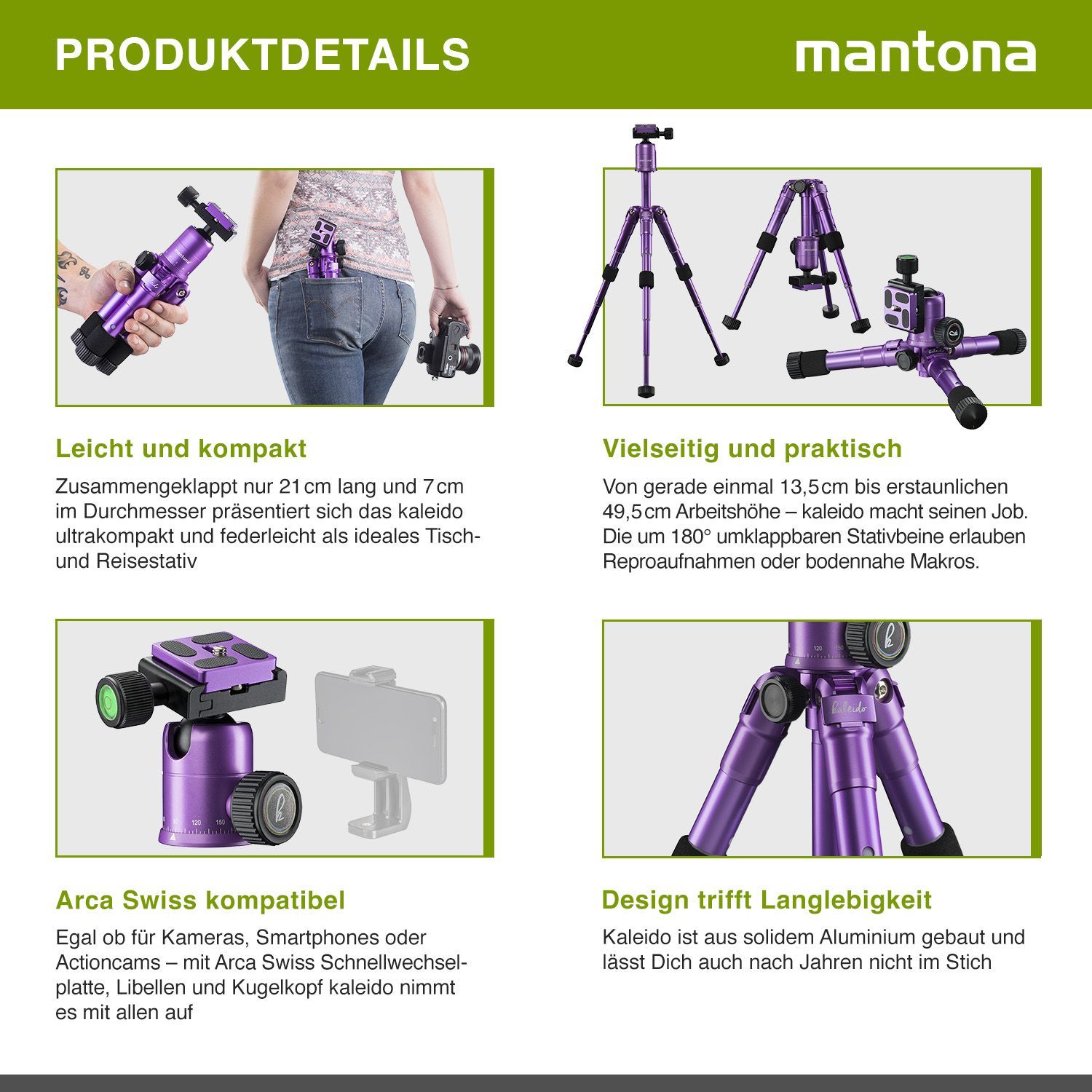 Mantona Kaleido Mini Stativ light purple metallic Tischstativ Reisestativ Kamera