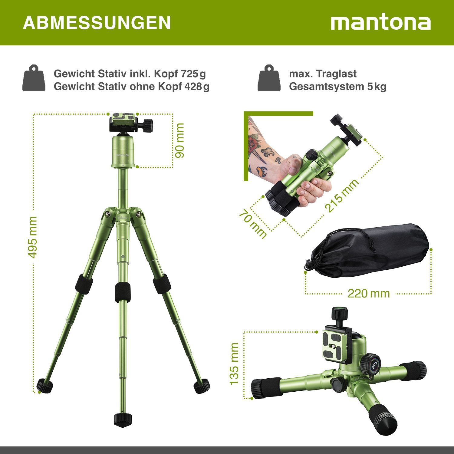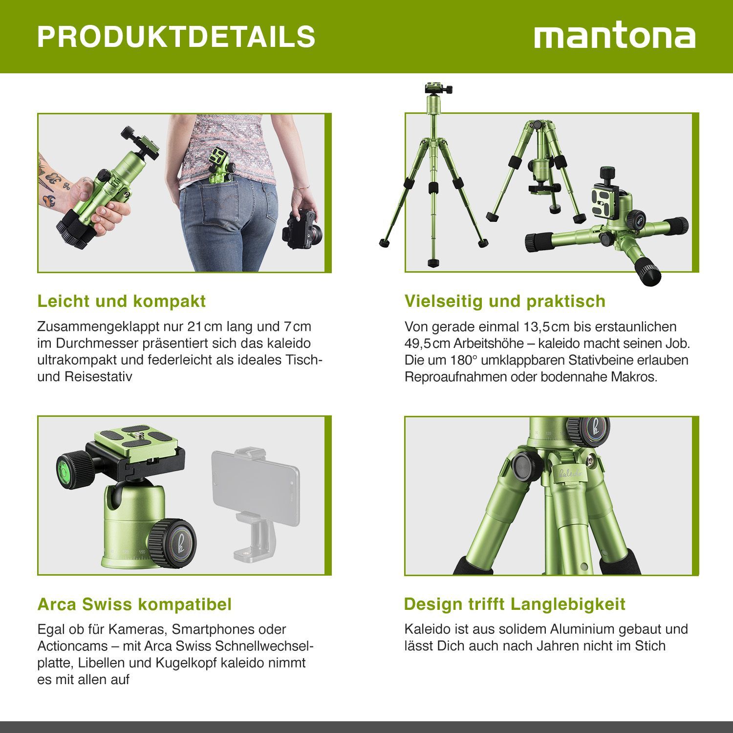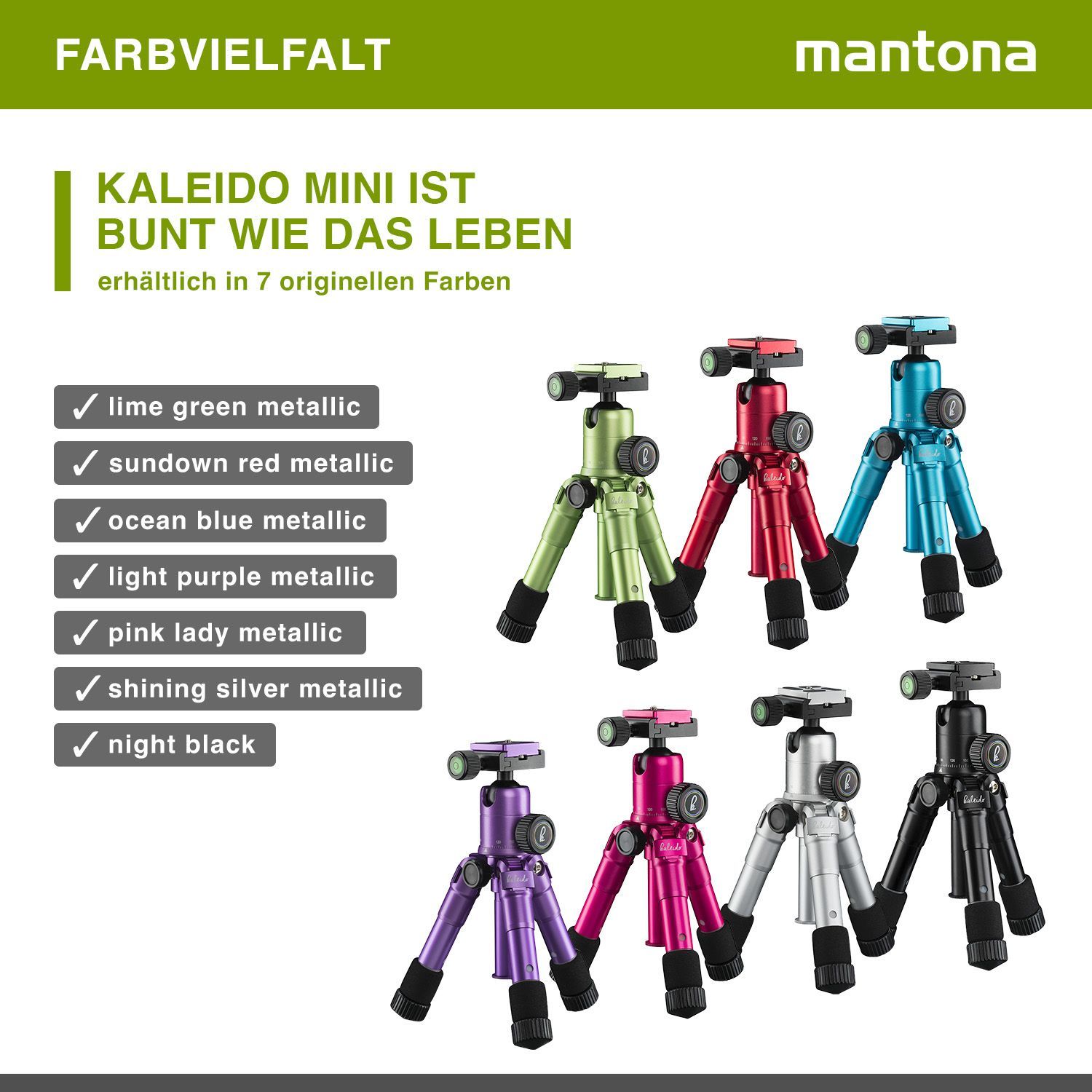 Mantona Kaleido Mini Stativ lime green metallic Tischstativ Reisestativ Kamera