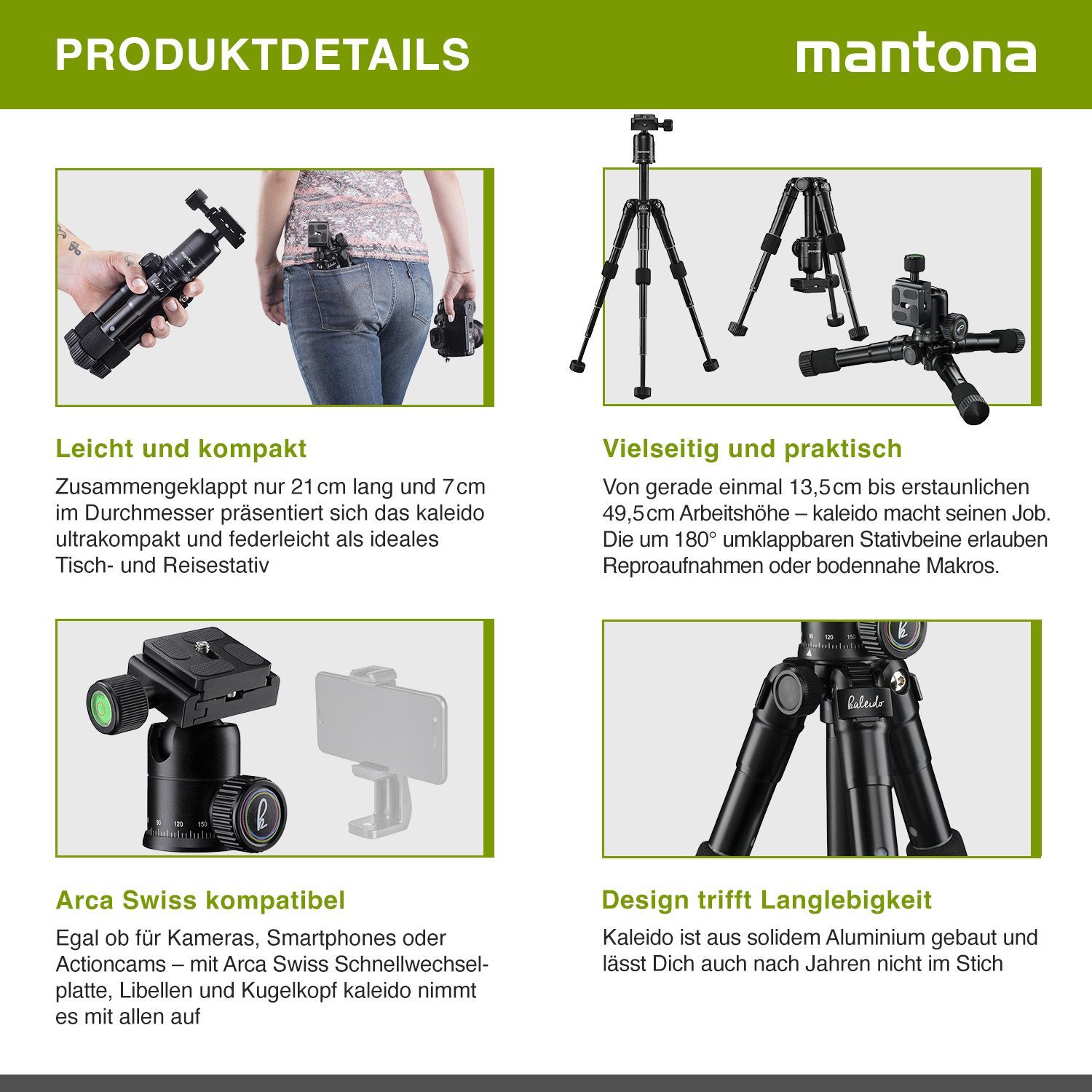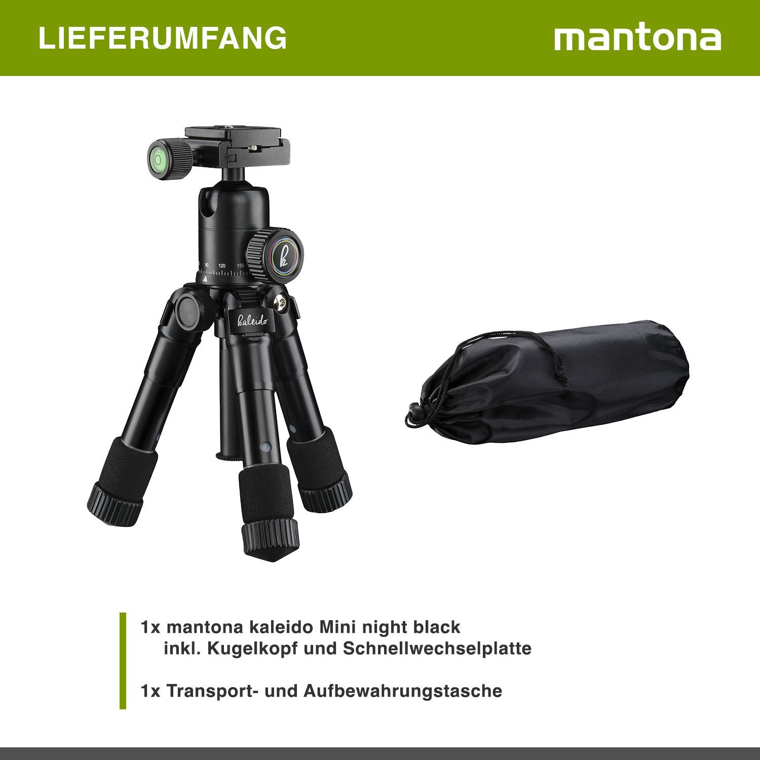 Mantona Kaleido Mini Stativ night black Tischstativ Reisestativ Kamerastativ