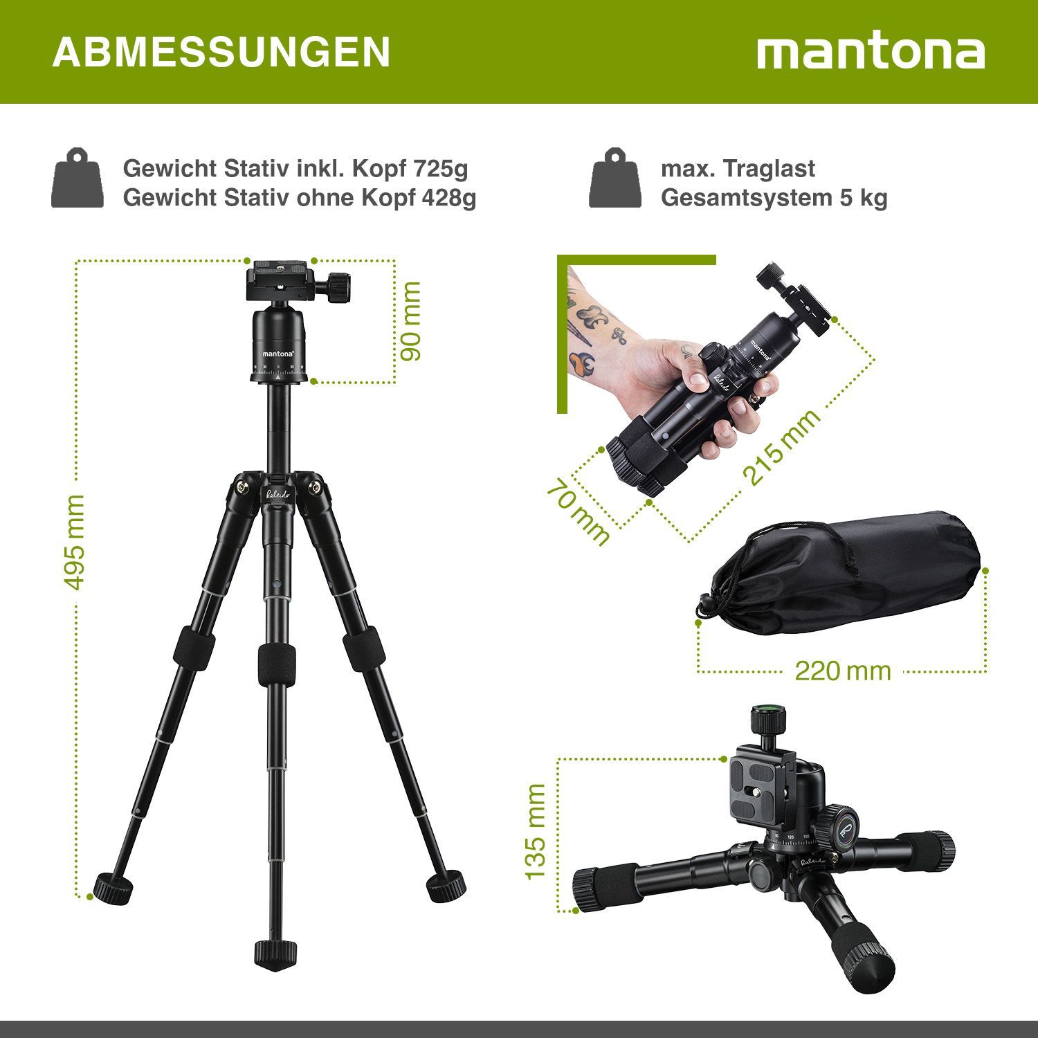 Gewicht Stativ inkl. Kopf: