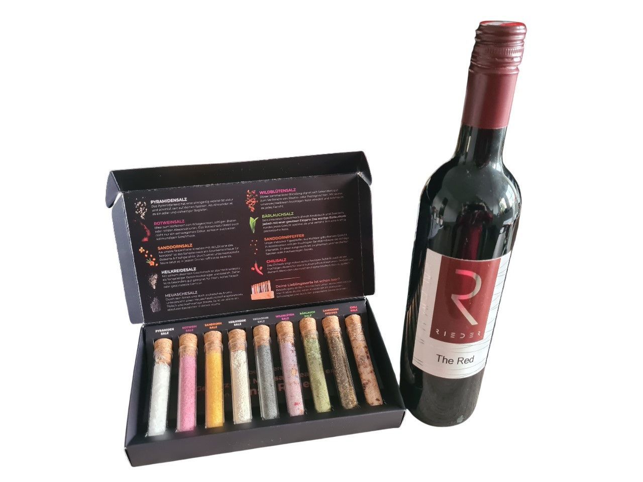 Manufakturgewürze 9 Röhrchen + Ständer und eine Flasche The Red Merlot