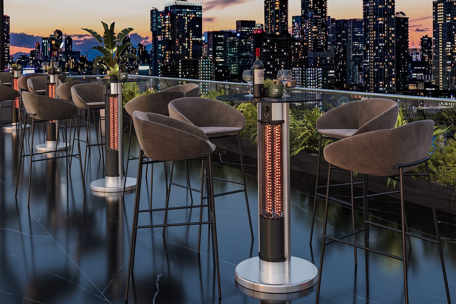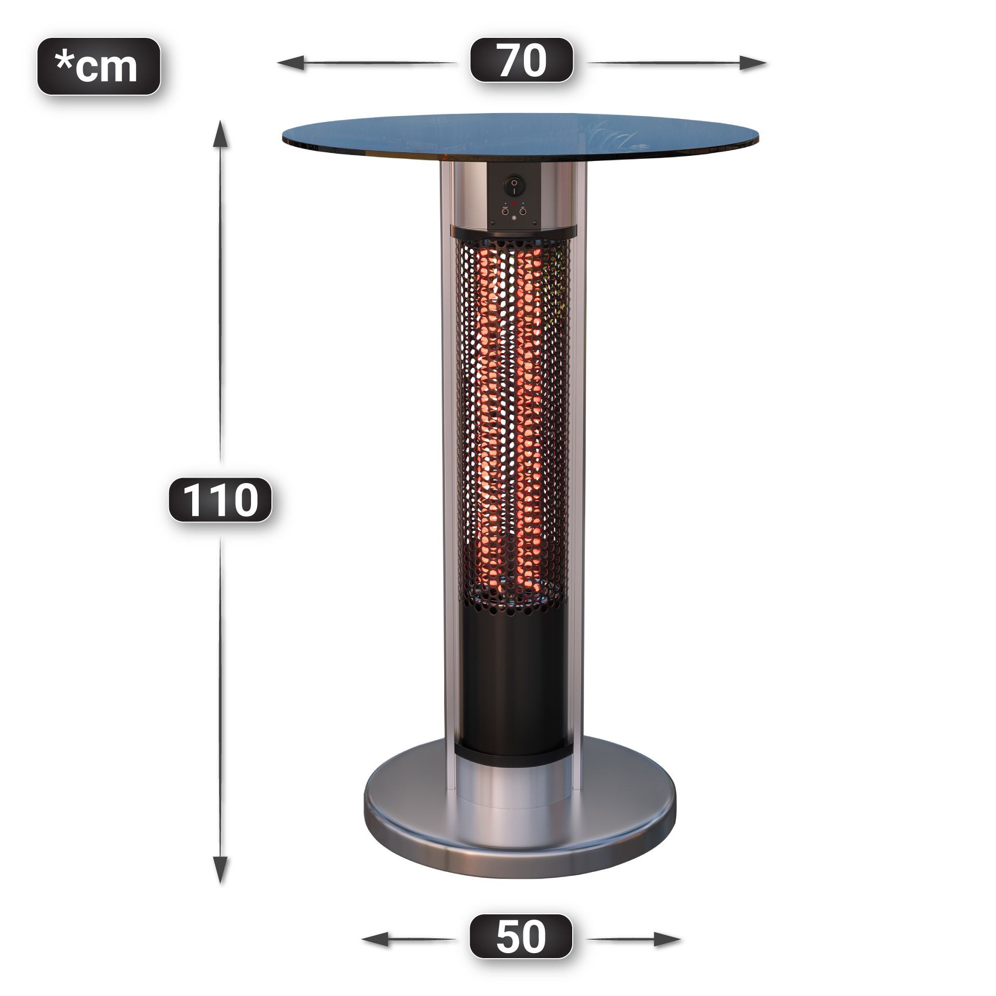 MARA | Glas Stehtisch Heiz Strahler | Ø 70 cm | 800 & 1600W | Infrarot / Elektro | 2