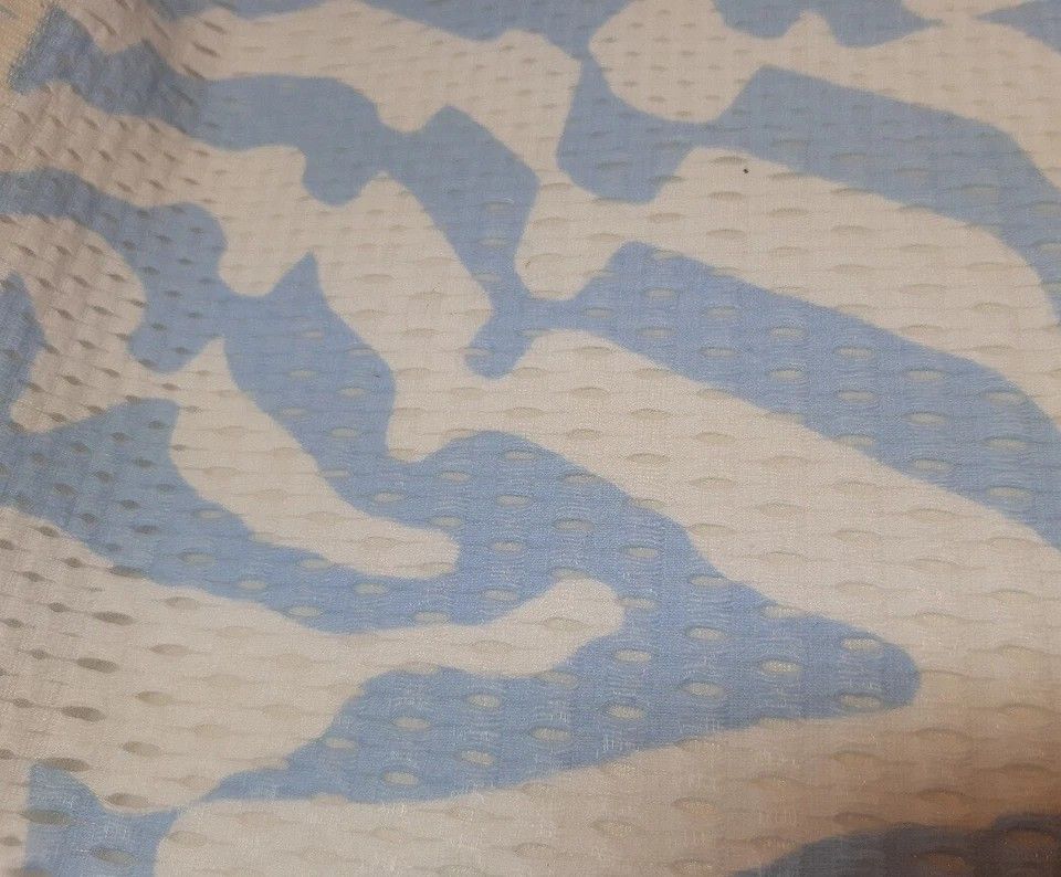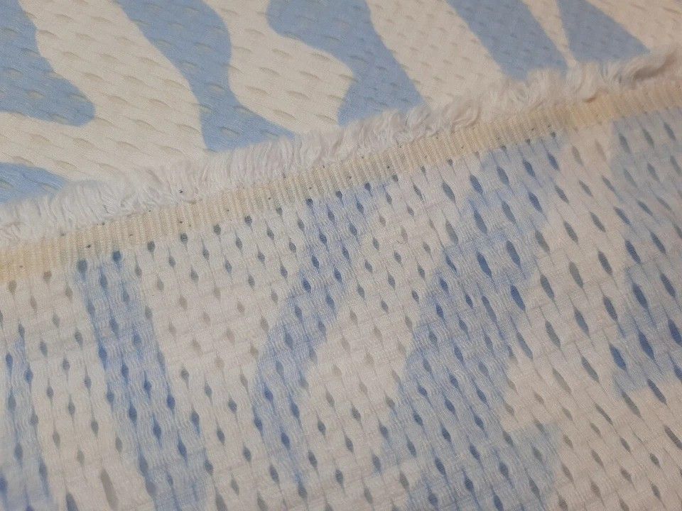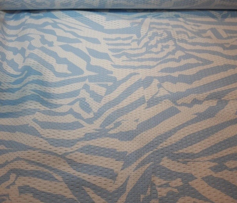 Designerstoff in Italien produziert exclusiv für Marc Cain (der Stoff stammt aus Überhängen der Produktion) *********************************************************************** Exclusives, extravagantes Netz -Gewebe Wildstripes in hellblau auf weißem Grund Aufgrund der Löcher im Gewebe ist der St