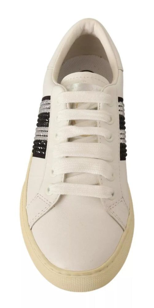 Marc Jacobs Marc Jacobs White Leather Crystal Embellished Sneakers Shoes