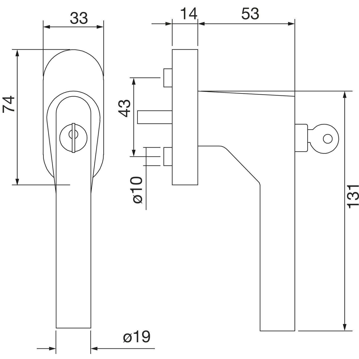 Marchesi Fenstergriff Gehrung Sperrzylinder Edelstahl matt