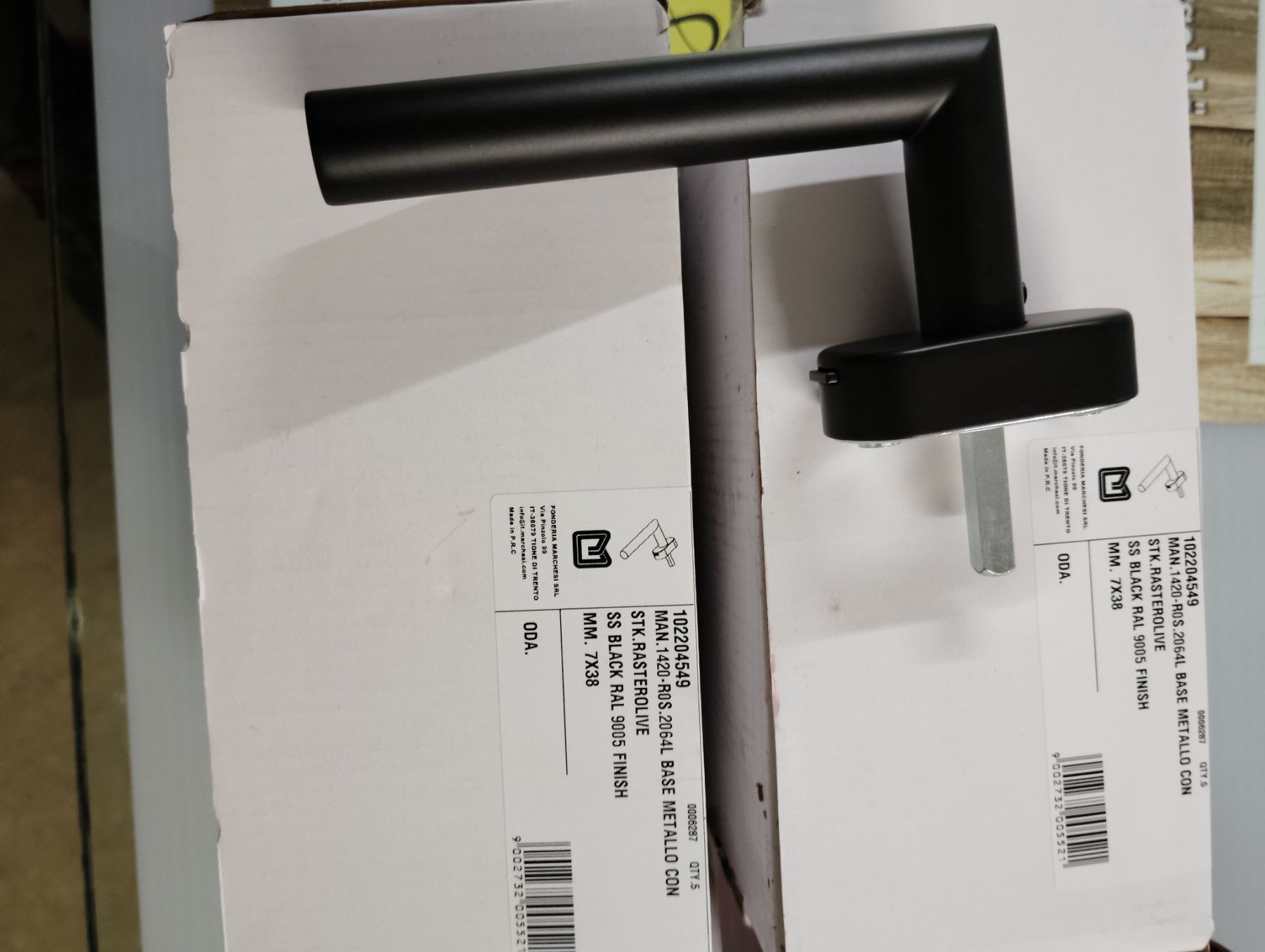 Marchesi Fenstergriff + Verriegelung Gehrung + ovale Rosette, Edelstahl schwarz