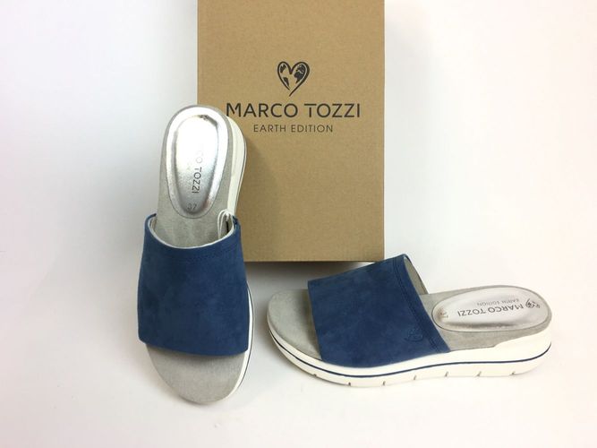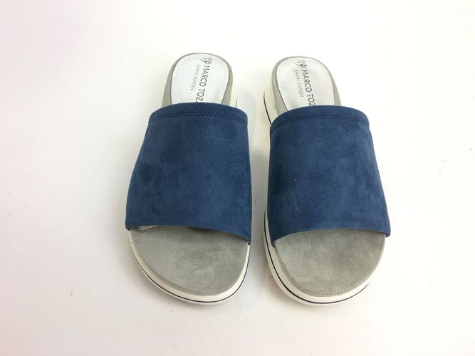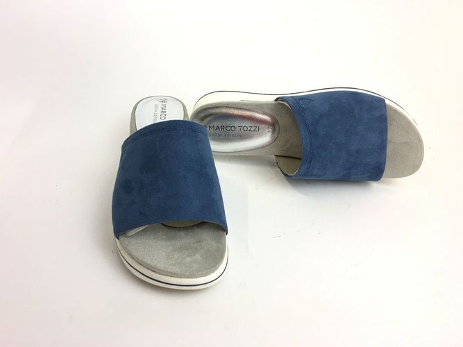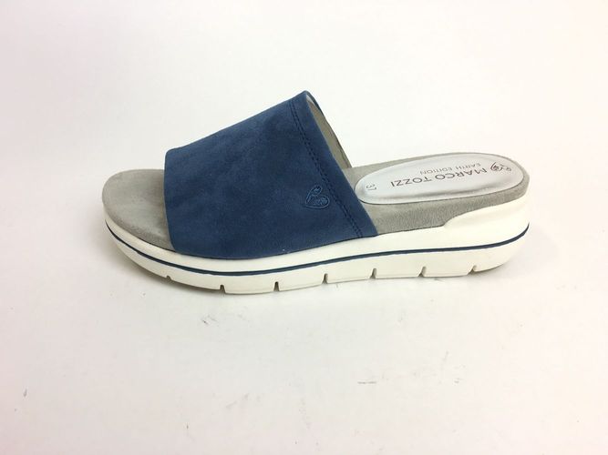 Marco Tozzi Marco Tozzi Damen Pantolette jeansblau mit dicker weißer Laufsohle