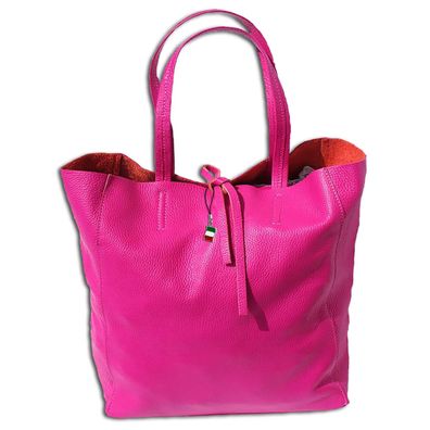Florence Echtleder Schultertasche pink ital. Shopper Rindsleder Damen OTF112P