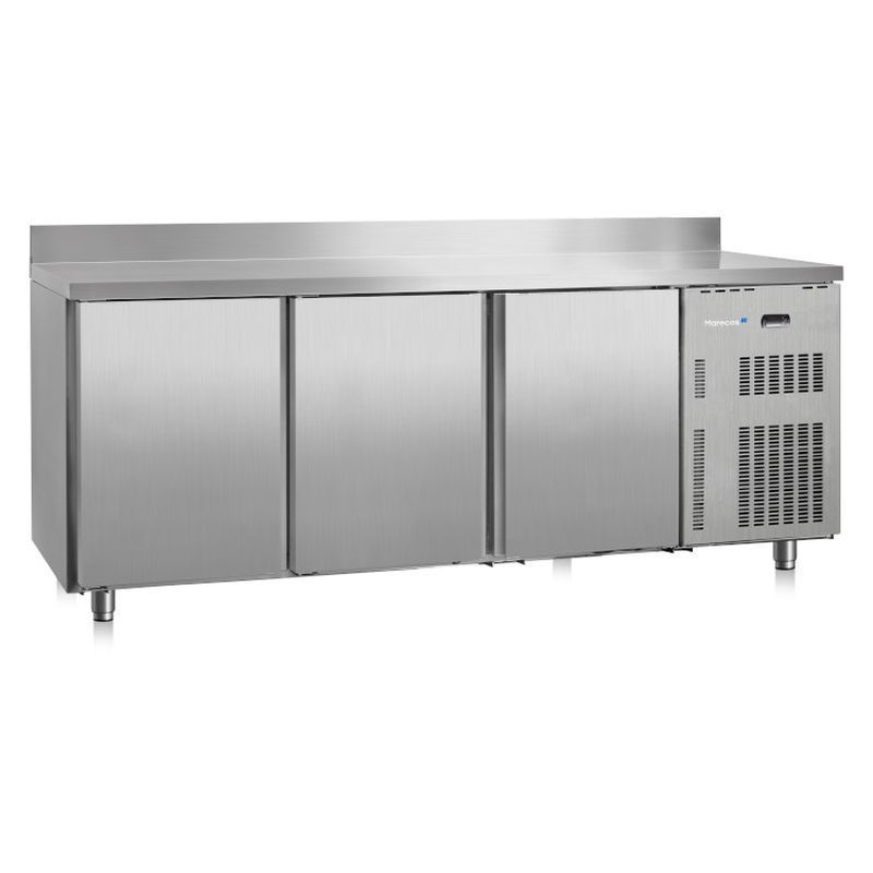 Marecos Kühltisch mit 3 Türen 3 Roste und Aufkantung 304 Liter aus Edelstahl