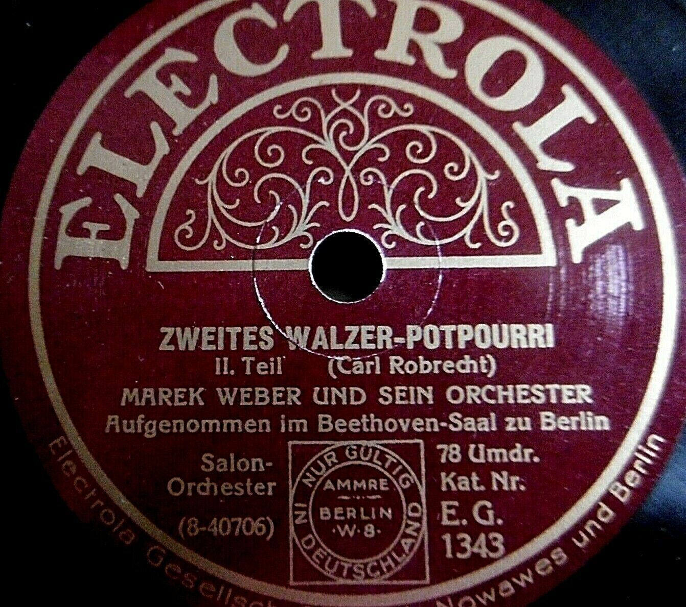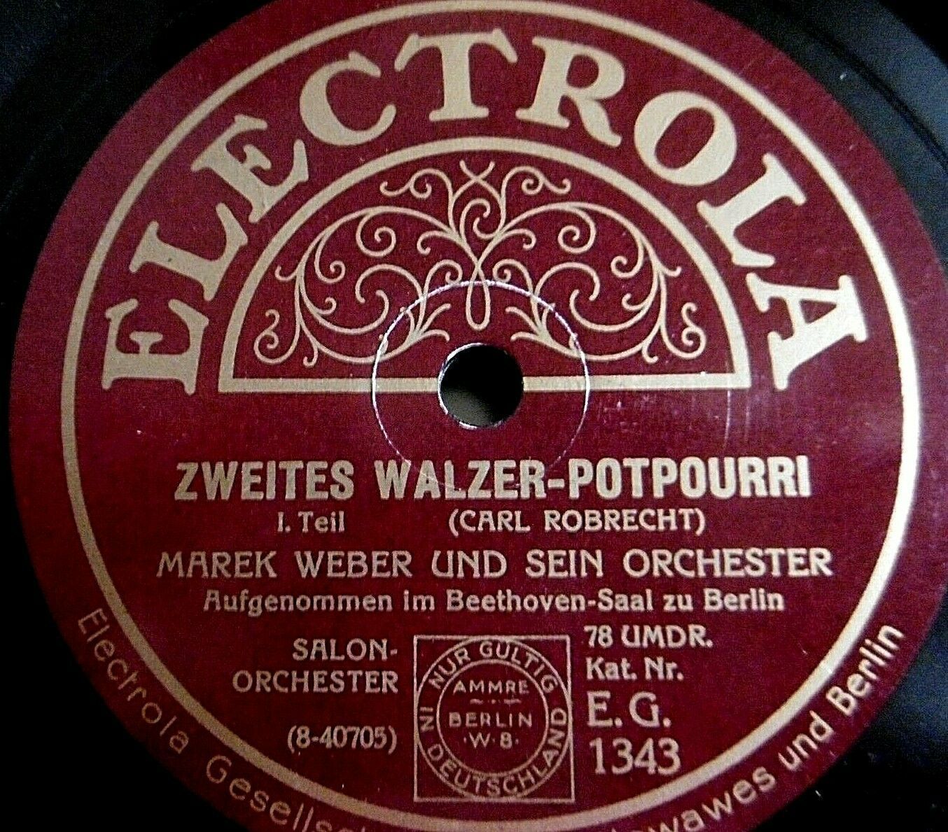MAREK WEBER "Zweites Walzer-Potpourri - Teil I & II" Electrola 1929 78rpm 10"